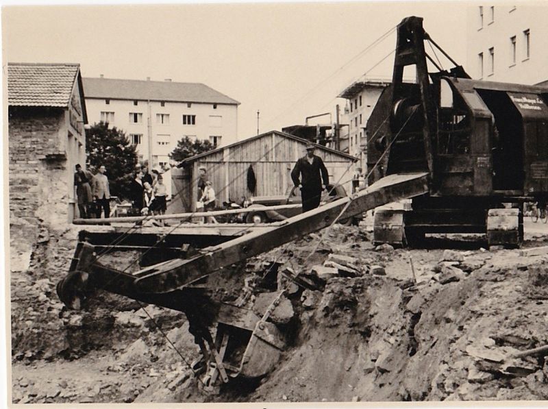 Eine interessante Bilderserie vom Bau eines Wohn- und Geschäftshauses in Pforzheim. Im Einsatz ein Weserhütte Dieselbagger Typ LR5