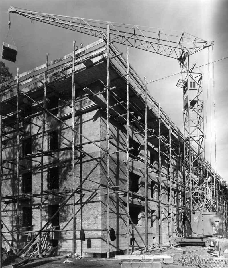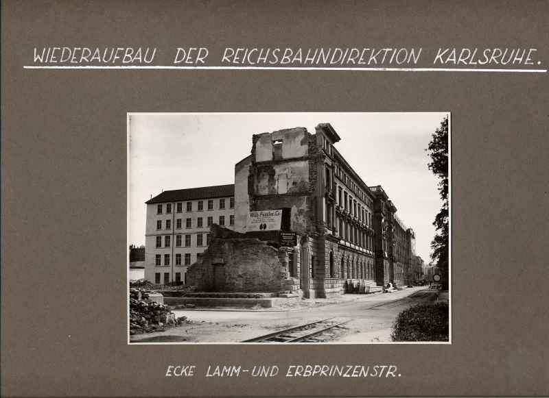 Die Firma Füssler war eine alt eingesessene Karlsruher Baufirma. Mit deren Insolvenz verschwand auch viel Dokumentation. Ein Foto-Album konnten wir noch rechtzeitig übernehmen. Darin sind viele Baustellen aus der Nachkriegszeit. Sehr interessant ist der Wiederaufbau der Bundesbahndirektion in der Lammstraße in Karlsruhe dokumentiert.
