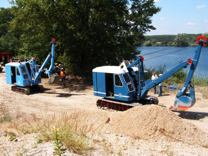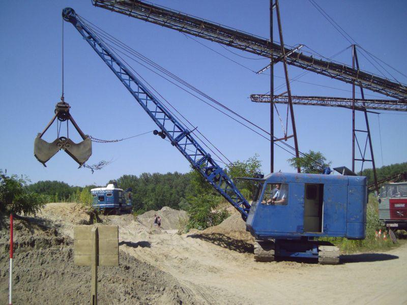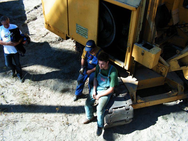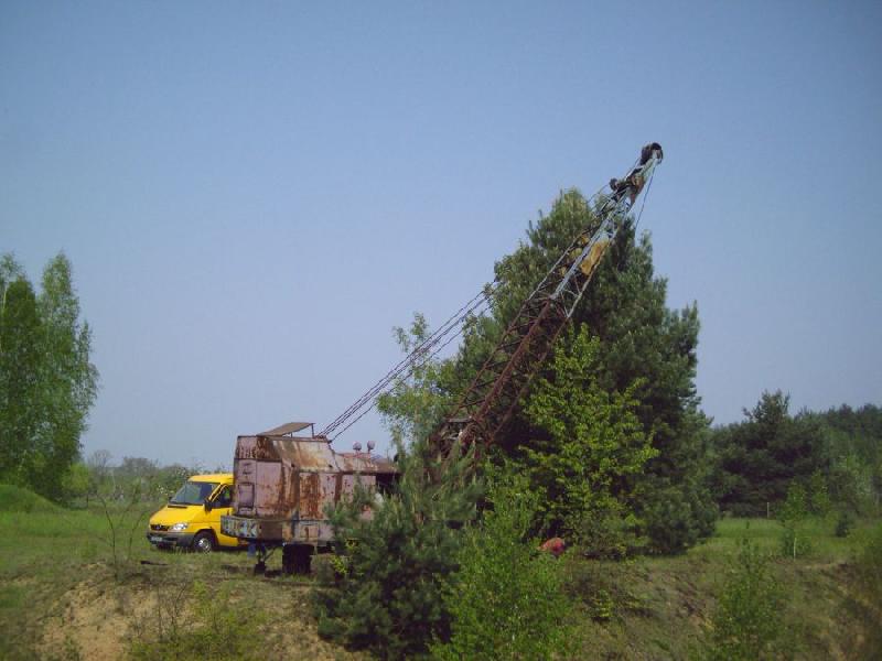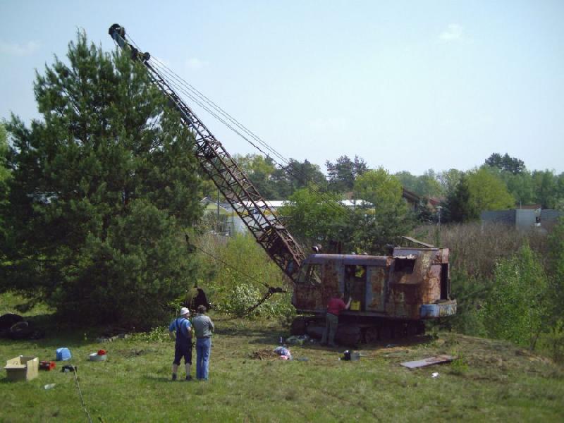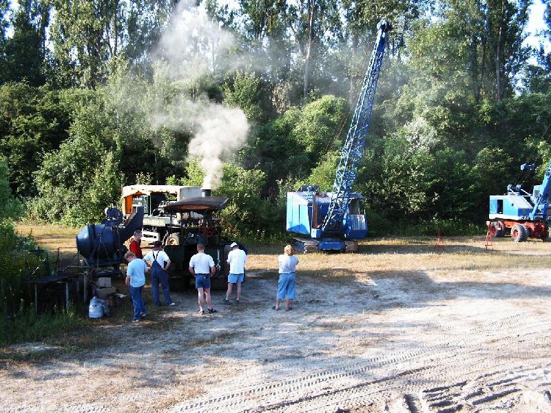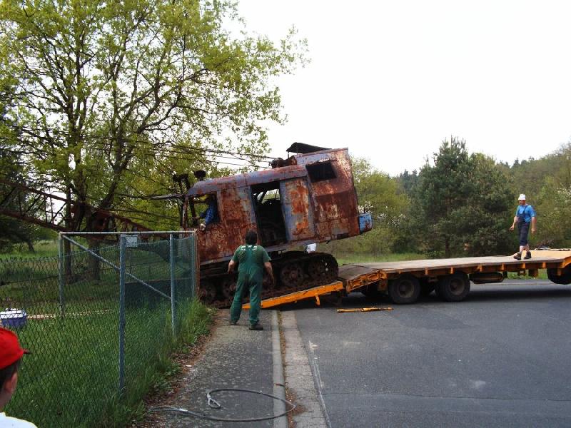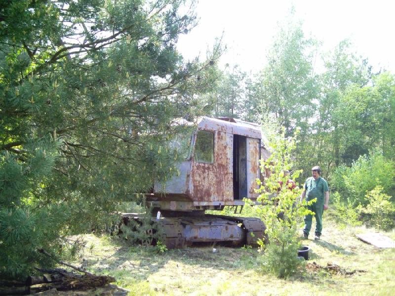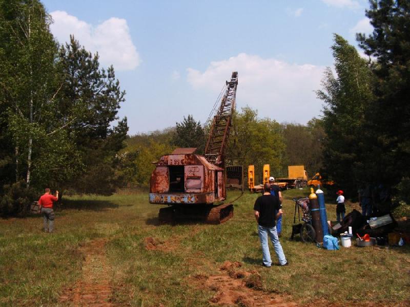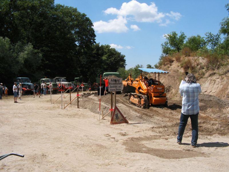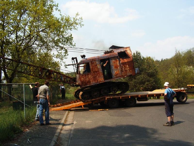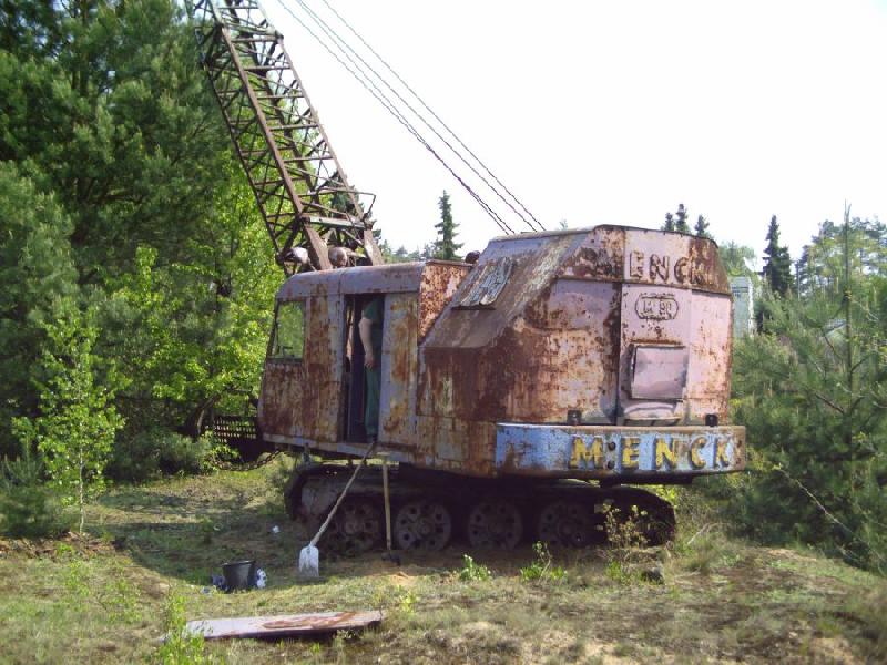 Eine der ersten Aktionen im Jahr 2006 war die Bergung des Menck M90 am 06.05.2006. Der Standort direkt an der Abbruchkante eines Kiesabbaugebietes machte die Bergung zu einer spannenden Aktion. Zunächst mussten die zugeschütteten Ketten freigeschaufelt werden, danach mussten einzelne Kettenglieder gangbar gemacht werden. Dazu wurde die Maschine gefühlvoll vor und zurück gefahren, bis alle Gelenke wieder gangbar waren.