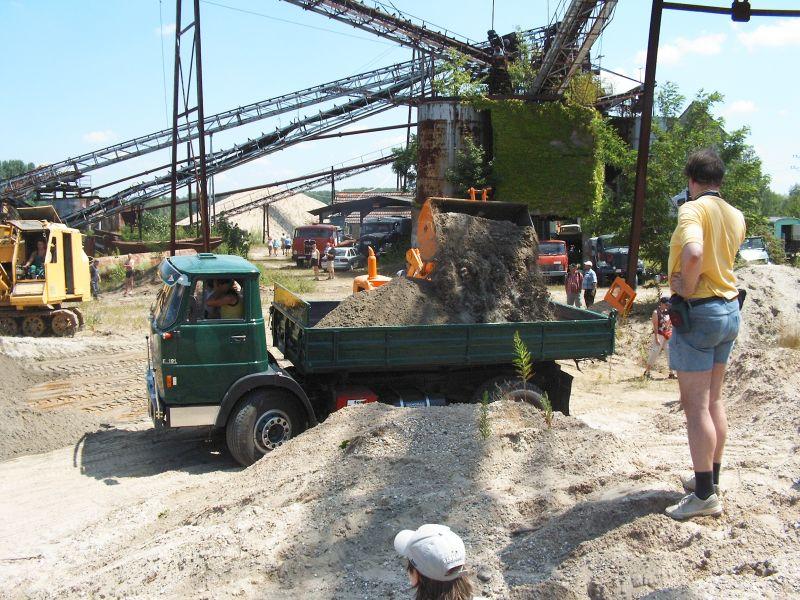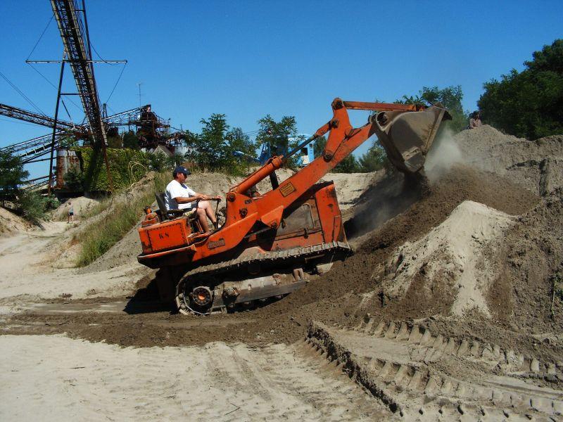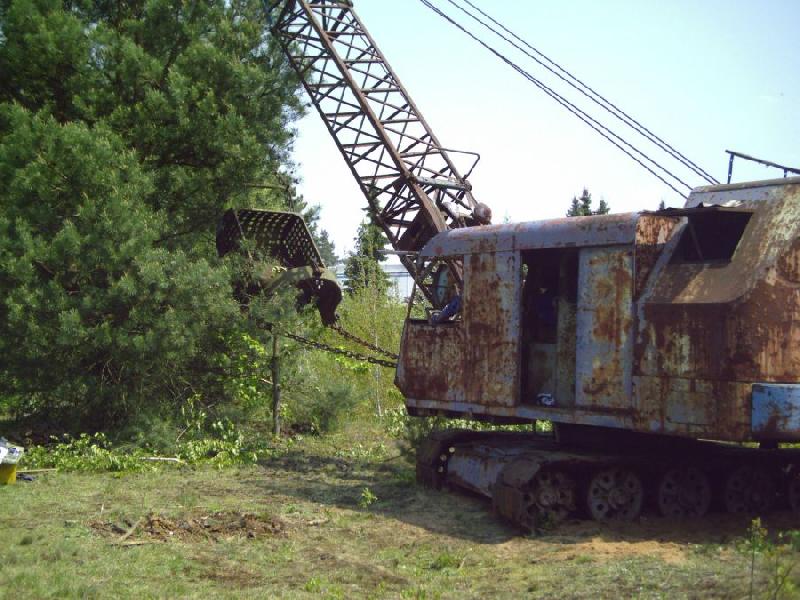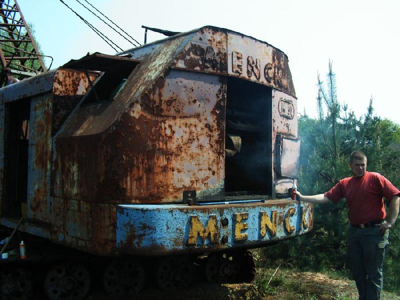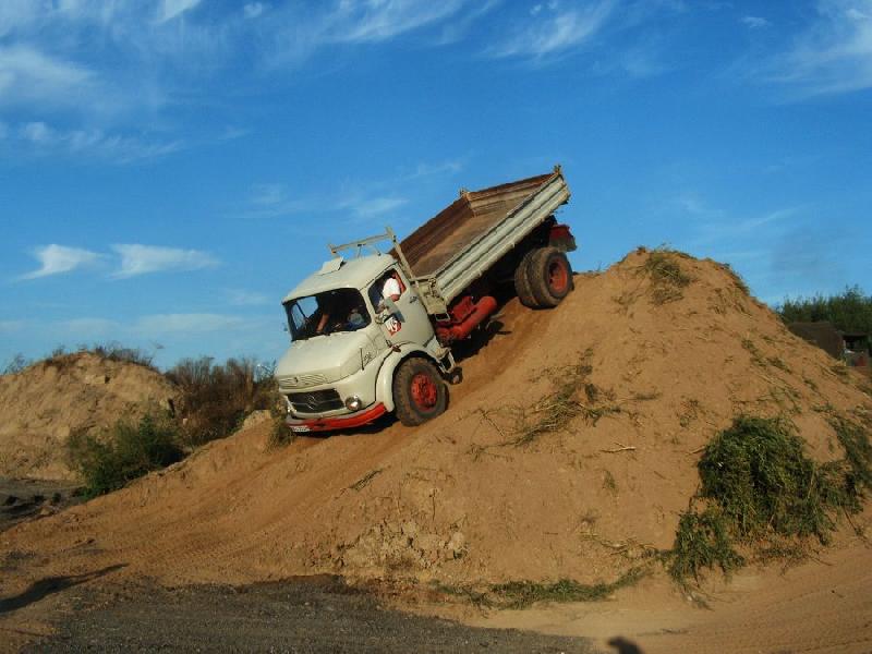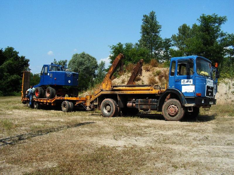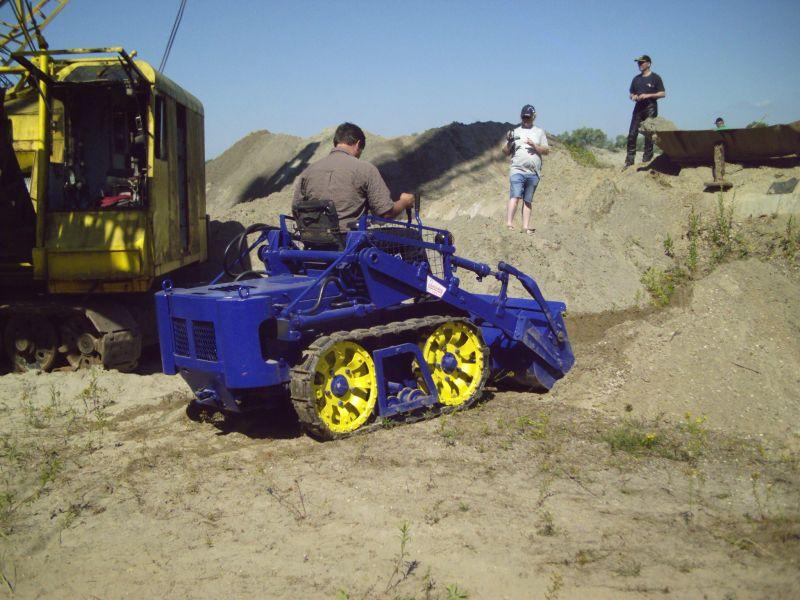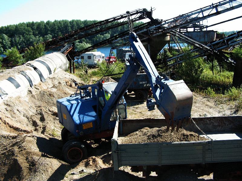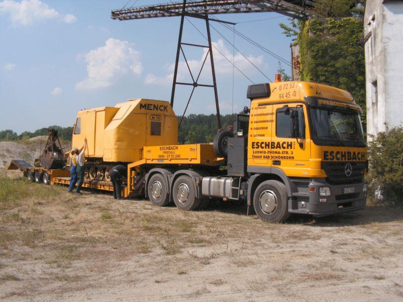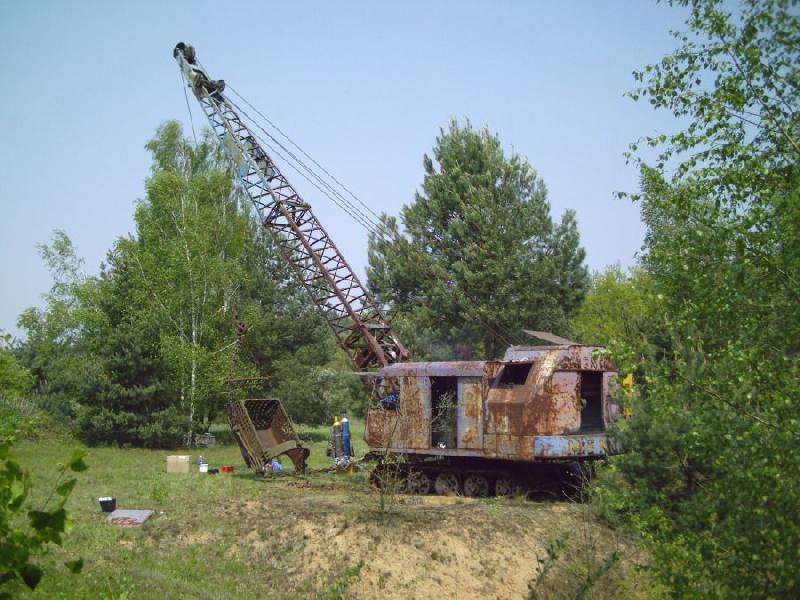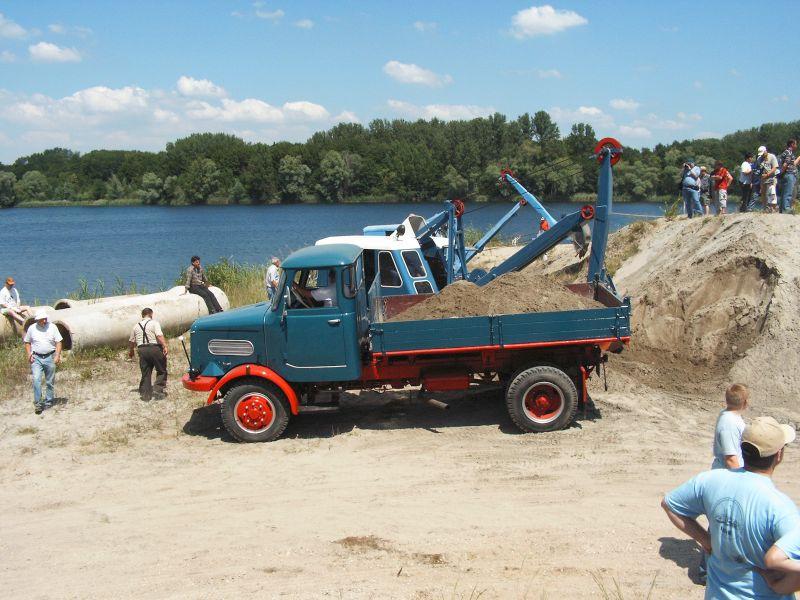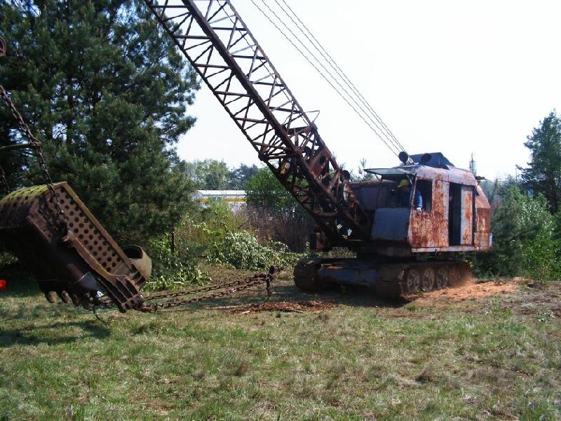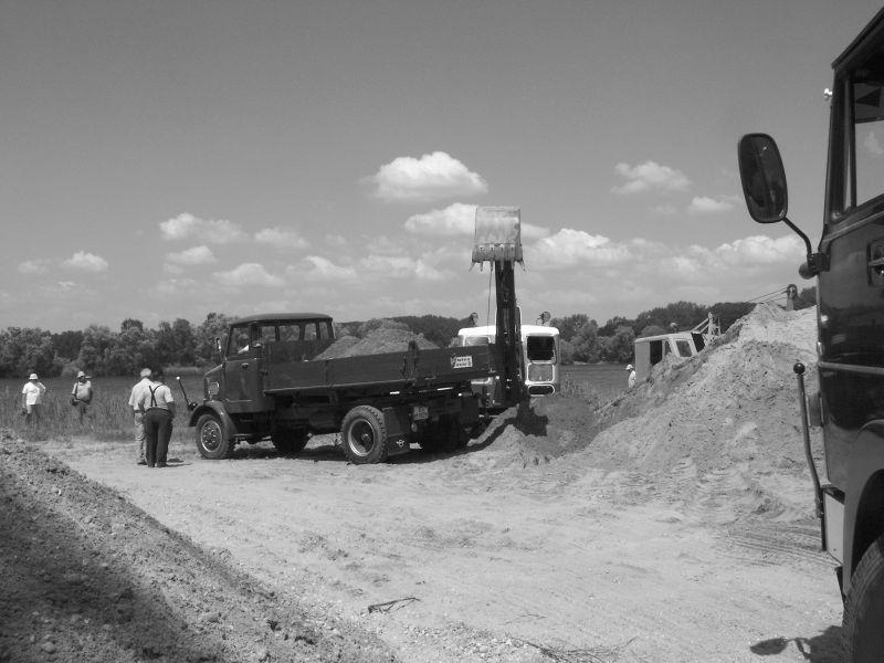 Eine der ersten Aktionen im Jahr 2006 war die Bergung des Menck M90 am 06.05.2006. Der Standort direkt an der Abbruchkante eines Kiesabbaugebietes machte die Bergung zu einer spannenden Aktion. Zunächst mussten die zugeschütteten Ketten freigeschaufelt werden, danach mussten einzelne Kettenglieder gangbar gemacht werden. Dazu wurde die Maschine gefühlvoll vor und zurück gefahren, bis alle Gelenke wieder gangbar waren.