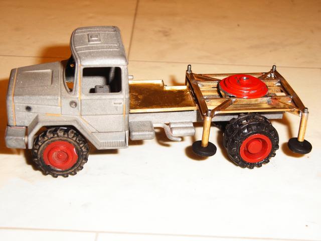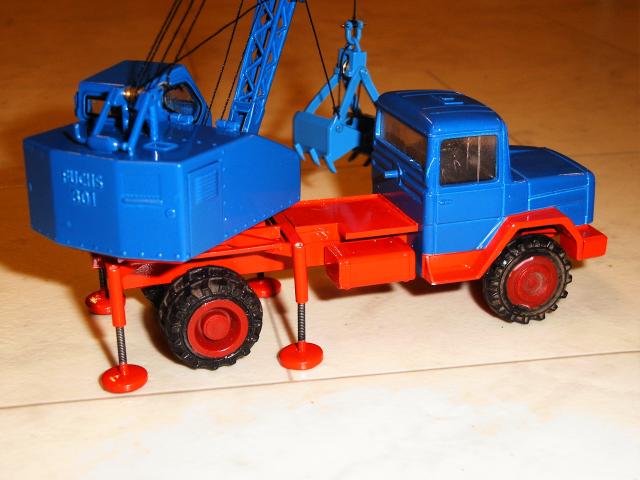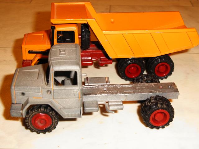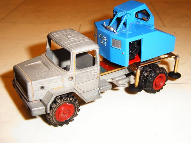 Bereits im Jahr 2007 wurde dieses Modell realisiert. Damals war das Original noch in der Restaurierung Bis das fertig war, wurde zunächst ein Modell im Maßstab 1:50 gebaut. Grundlage war der Magirus-Kipper von Cursor und der Fuchs 301 von NZG. Nach unserem Kenntnisstand wäre das Curosor Modell 1:43, nachgemessen liegen die Maßtoleranzen noch innerhalb der Toleranzen des NZG-Modells.