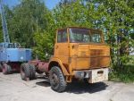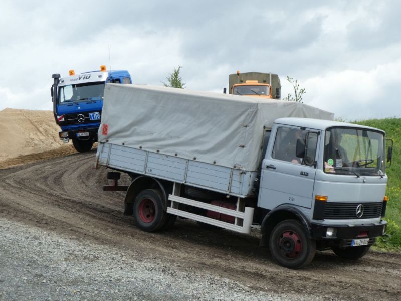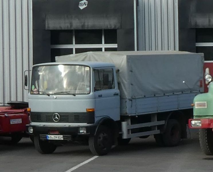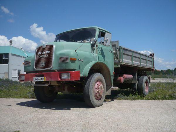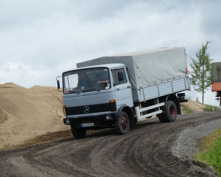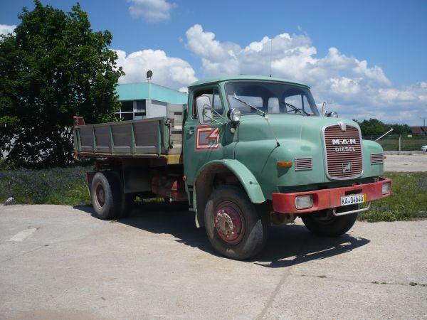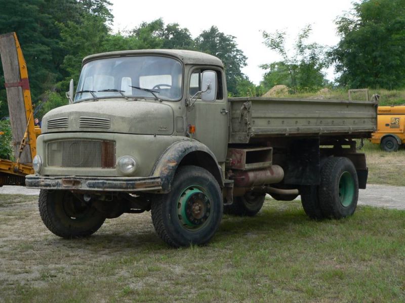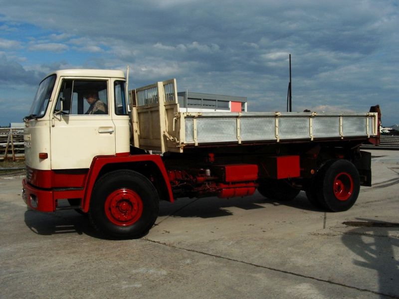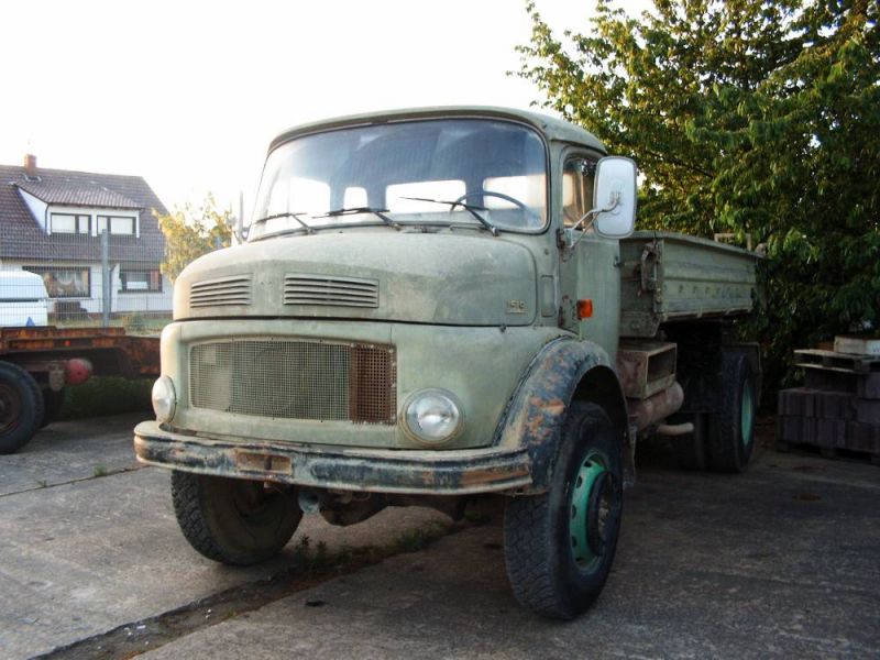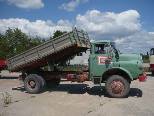 Der Lkw wurde im Jahr 1973 von der Firma Schotterwerk Alfred Dörflinger in Marzell-Malsburg beschafft. Zunächst wurde der Kipper im Auslieferverkehr eingesetzt. In den ersten Jahren wurde der Lkw auch im Winterdienst betrieben. Aus dieser Zeit liegen sogar noch die Einsatzpläne vor. Zu diesem Zweck wurde eine Schneeräumeinrichtung eingebaut. Davon sind lediglich die zusätzlichen Scheinwerfer erhalten. In den 80er Jahren wurde der Lkw abgemeldet und war fortan nur im werksinternen Verkehr eingesetzt. Um den Kipper zu schonen wurden an den Innenseiten der Alu-Bordwände Verschleißplatten aus Stahl angebracht. Auch sonst wurde das Fahrzeug vorbildlich unterhalten. Im Jahr 2009 bekamen wir die Maschine angeboten. Nach kurzer Besichtigung war die Entscheidung zugunsten des Lkw gefallen. Auf eigener Achse wurde er nach Waghäusel überführt; mit einem Zwischenstopp bei der DEKRA in Karlsruhe. Dort wurde eine Instandsetzungsliste zusammengestellt, um den Lkw wieder auf die Straße zu bringen. Nach Abarbeiten der Mängelliste konnte dann im September 2009 das begehrte HU-Siegel einschließlich Oldtimergutachten erworben werden. Seitdem ist der Lkw auf vielen Treffen und Veranstaltungen sowie als Arbeitstier für die Aufgaben der IghB im Einsatz. So manches Kleingerät fand auf seiner Ladefläche den Weg in unsere Sammlung