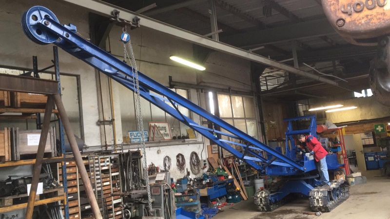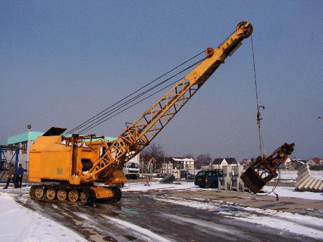 Baujahr 1968, restauriert, Ausrüstung: Gittermast, Greifer, Tieflöffeleinrichtung