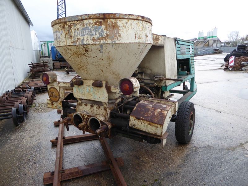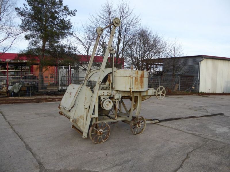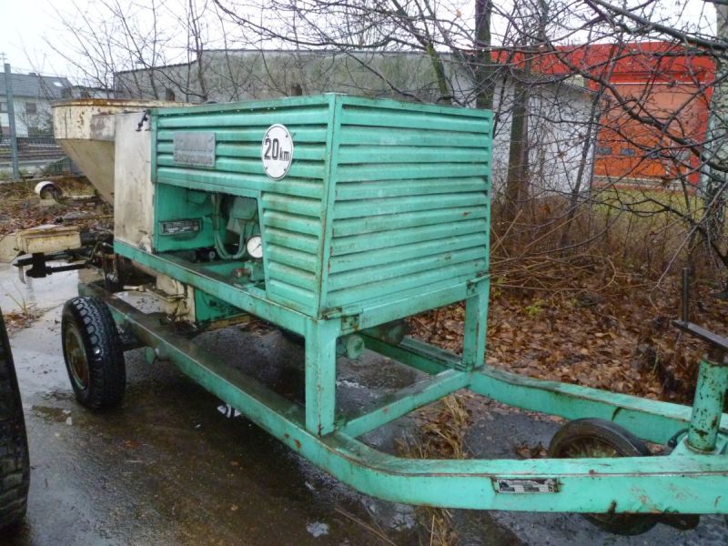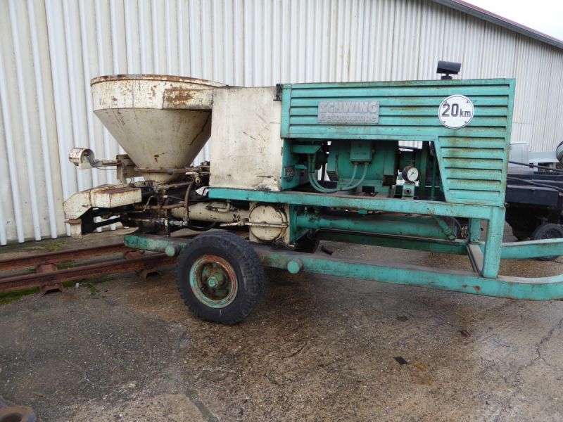 1934 wurde die Firma Schwing von Schlossermeister Friedrich Wilhelm Schwing in Wanne-Eickel gegründet. Zunächst lieferte er Zubehör für den Berg- und Straßenbau. Bereits seinerzeit be-gann die Fertigung von Betonmaschinen. Anfang der 50er Jahre wurde die erste stationäre Betonpumpe entwickelt. Bis dahin fand der Betontransport diskontinuierlich mittels Kran und Kübel oder Kübelfahrzeugen statt. An gro-ßen Baustellen, wie Brücken oder Talsperren, wurde Beton über Rutschen von den Mischanla-gen her verteilt. 1957 wurde die erste Doppelkolbenpumpe von Schwing auf den Markt ge-bracht. Dabei wird der Beton abwechselnd von zwei Kolben gepumpt. Während ein Kolben den gefüllten Zylinder ausschiebt, saugt der rückwärts laufende zweite Kolben frisches Material in den Zylinder. Durch eine selbsttätige Weiche werden die Kolben abwechselnd zu- oder abge-schaltet. Bei einer Hubzahl von 30/min und einem Hubraum von 14l konnten bis zu 420 Liter Beton pro Minute gefördert werden. Der Antrieb geschieht elektro-hydraulisch. Neben Beton-pumpen wurden bei Schwing bereits Turmdrehkrane, Betonmischer, Schaufellader und Steue-rungen für Hydraulik-Bagger produziert. So wurden Maschinen von Fuchs zum Schwing-Exakt-Bagger ausgerüstet. Die bei der IghB hinterstellte Anhänger-Betonpumpe war bei der Firma Diringer und Scheidel in Mannheim im Einsatz.