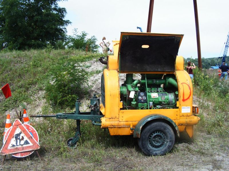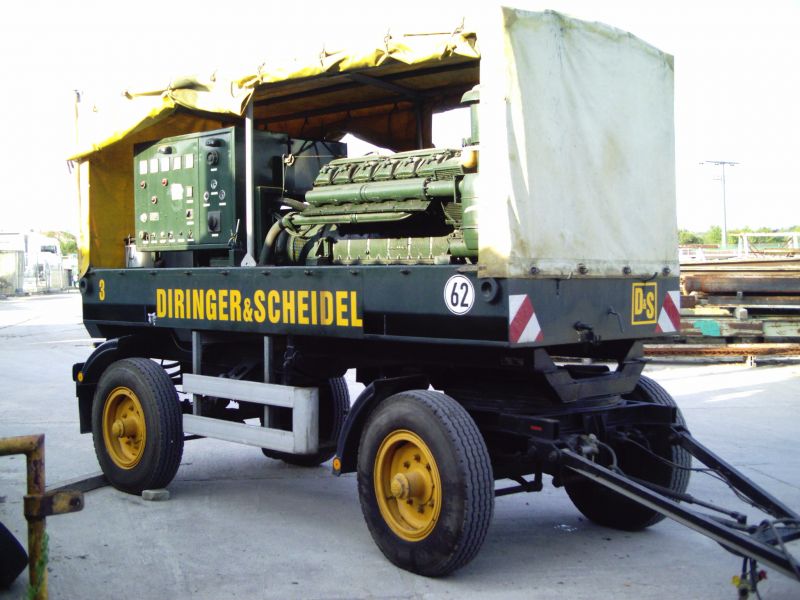 Irmer&Elze war ein Hersteller von Kompressoren aus Bad Oeynhausen. Die dort produzierten Anhänger-Kompressoren waren auf vielen Baustellen beliebte Geräte. Die Firma wurde 1992 von Atlas Copco übernommen. Angetrieben von einem Dreizylinder-Dieselmotor Typ Deutz F3L912, produzierte der Kompressor 1300A Luft, bei 8 bar, welche in zwei im Rahmen integrier-te Behältern gespeichert wurde. Unser Gerät war bei der Firma Diringer & Scheidel in Mannheim im Einsatz bevor es im Jahr 2007 an den Verein als Spende überging. Nach einer grundlegenden Überholung des Motors ist der Kompressor jetzt wieder voll einsatzbereit. Mittlerweile konnten wir auch einige Druckluft-hämmer mit entsprechenden Meißeln beschaffen. Damit steht und auch für unsere Arbeiten an der Infrastruktur ein brauchbares Gerät zur Verfügung.