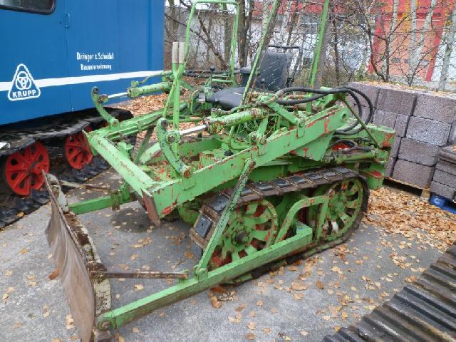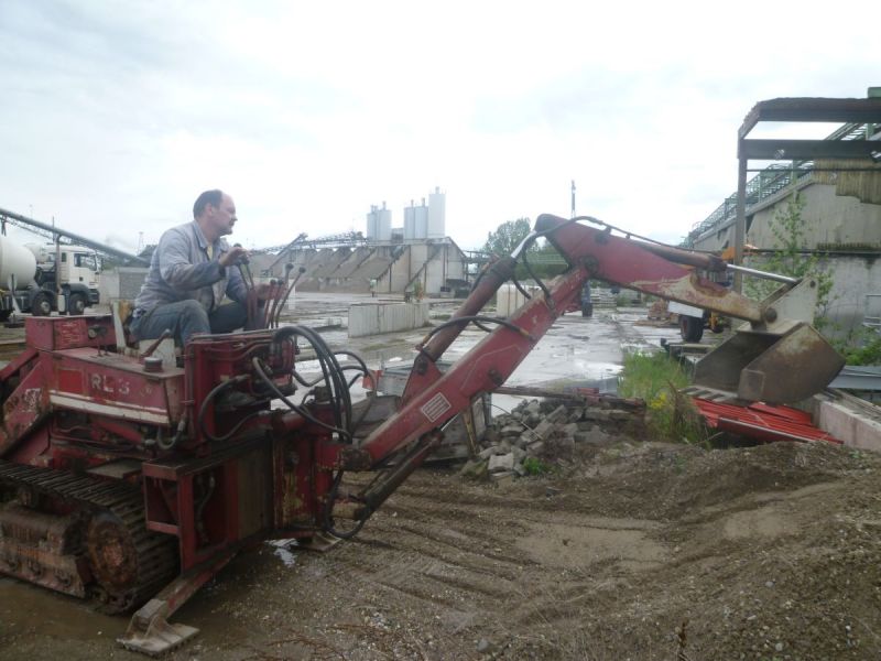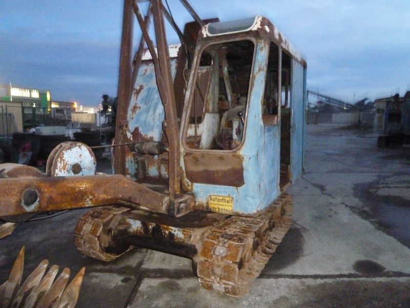 Unter der Bezeichnung K301 wurde dieser Raupentyp von der Firma Schmiedag entwickelt. Mit hydrostatischem Getriebe erhielt sie den Zusatz „H“, „S“ stand entsprechend für die Ausfüh-rung mit Schaltgetriebe. Neben der Ladeschaufel und dem Heckbagger als Ausrüstung gab es auch noch ein Planierschild und einen Heckaufreißer. Anstelle des Heckbaggers konnte ein Kon-tergewicht montiert werden. Seit 1.10.1969 erfolgt Herstellung, Vertrieb und Kundendienst durch die Firma Orenstein & Koppel AG in Dortmund. Damit wurde die Typenbezeichnung in RL3 geändert. Die Maschine wird von einem Deutz F2L912 mit 30,5 PS angetrieben. Damit erreicht die Raupe eine Geschwindigkeit von 6km/h. Der Schaufelinhalt der Ladeschaufel beträgt 0,3 m³ Unsere Maschine war zunächst bei der Firma Josef Uhlmann in Giessen im Einsatz, bevor sie im Jahr 2011 in die Sammlung der IghB wechselte. Seit dem ist sie dort auf verschiedenen Veran-staltungen im Einsatz. Insgesamt drei Tieflöffel in unterschiedlichen Abmessungen stehen uns zum Anbau an den Heckbagger zur Verfügung.