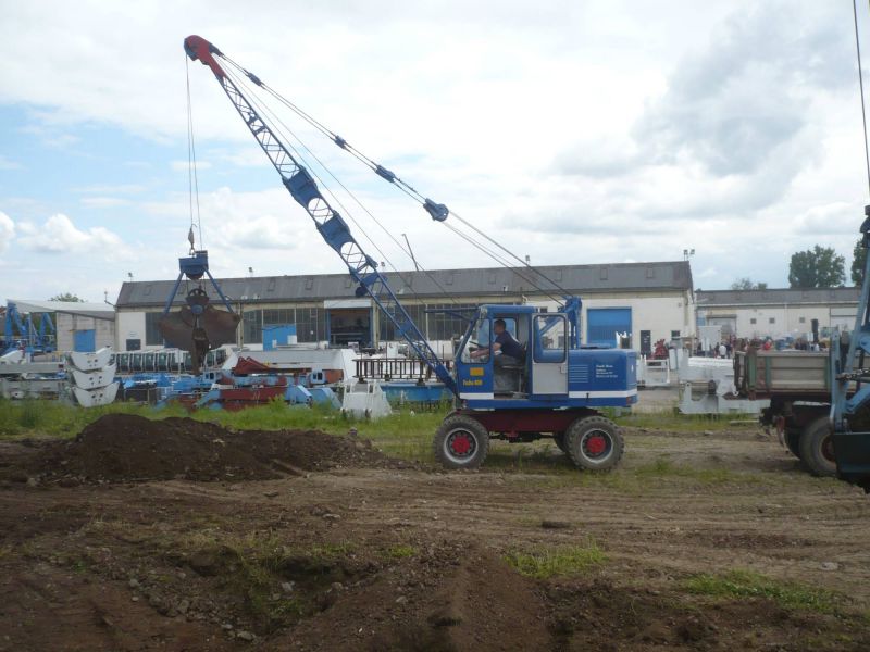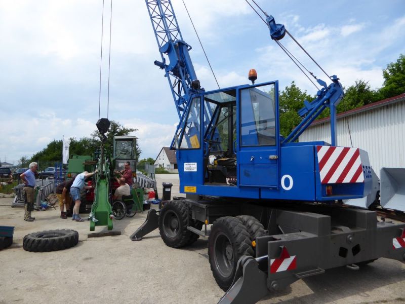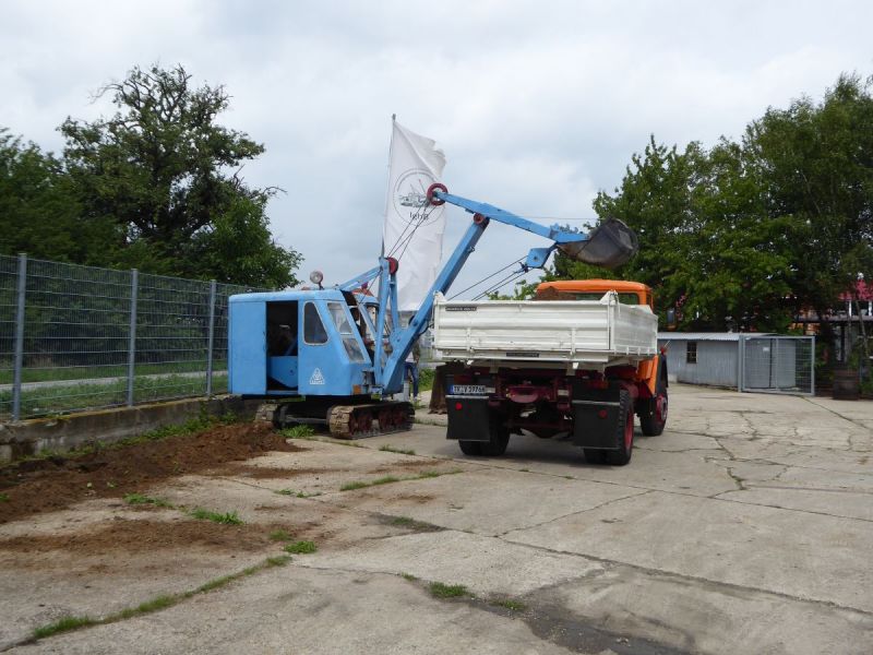 Damals war sie eigentlich schon zur Verschrottung vorgesehen. Im November 2003 wurde der Bagger in unsere Halle umgesetzt. Seitdem ist die Maschine ständiger Begleiter der Aktivitäten des Vereins. Dafür wird der Universalbagger auch ständig gewartet und unterhalten. Regelmäßig wird geschmiert, die Seile gefettet, Winden, Kupplungen und Bremsen nachgestellt und die eine oder andere Beule, die beim Betrieb nicht ausbleibt, nachbehandelt. Die Maschine steht also noch mitten im Leben.