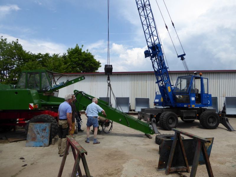 Dort begann dann die Restaurierung. Kräftige Unterstützung erhielten wir von einem ehemaligen Mitarbeiter der Johs. Fuchs KG welcher in seinem Arbeitsleben unzählige dieser Schüttgutlader montiert hat. Noch einmal wollte er so eine Maschine montieren. Kurz nach der präsentation der neu aufgebauten Maschine beim Händlertag bei Terex-Fuchs verstarb der Mitarbeiter.
