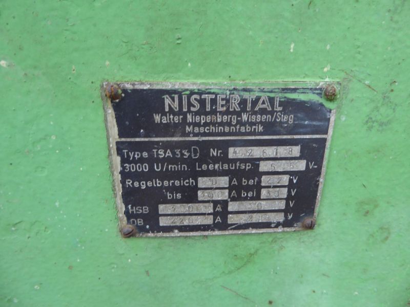 Bereits im Jahr 1911 gründete Carl Niepenberg im heutigen Solingen-Oligs eine Metallwarenfab-rik. Zunächst wurden Rasiermesser und Rasierklingen produziert. Im Jahr 1922 firmierte das Unternehmen dann als Niepenberg & Co GmbH. 1928 wurde der neue Standort in Niesterau im Niestertal gegründet. 1936 begann man mit der Produktion von Schweißtransformatoren, die Produktion von Rasierklingen lief parallel noch bis 1950 weiter. Im Jahr 1949 scheiden Walter Niepenberg und sein Sohn Walter jun. Niepenberg aus dem Un-ternehmen aus und gründen mit Walter Niepenberg Niestertal eine eigene Firma. Aus dieser Firma entstammt unser Schweißaggregat. Die Firma Carl Niepenberg entwickelte und verkaufte bereits ab 1945 Punktschweißmaschinen. Zur Erinnerung an seinen im Krieg gefallenen Sohn Alexander kreierte Carl Niepenberg das Kunstwort „Dalex“. Unter diesem Namen wurden die Produkte verkauft. Ab 1952 findet sich der Name auch im Firmennamen. Unter diesem Namen werden noch heute Schweißgeräte produ-ziert. Über die weitere Entwicklung der Firma Walter Niepenberg ist nichts bekannt. Unser Gerät war bei der Firma Klee KG in Mannheim im Einsatz, bevor das Aggregat von einem Privatmann übernommen wurde. Im Jahr 2014 wurde dieses dann an die IghB übergeben. Im Gegensatz zu herkömmlichen Stromaggregaten wird hier unmittelbar Strom erzeugt, wie er nur zum Schweißen gebraucht wird. Das Aggregat ist als Anhänger aufgebaut, welcher hinter einem Pkw oder Kleinlaster auf die Baustellen gefahren werden konnte. Das Gehäuse selbst besteht schon, sehr modern, aus GfK.