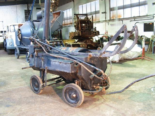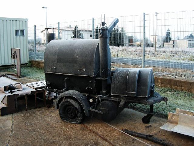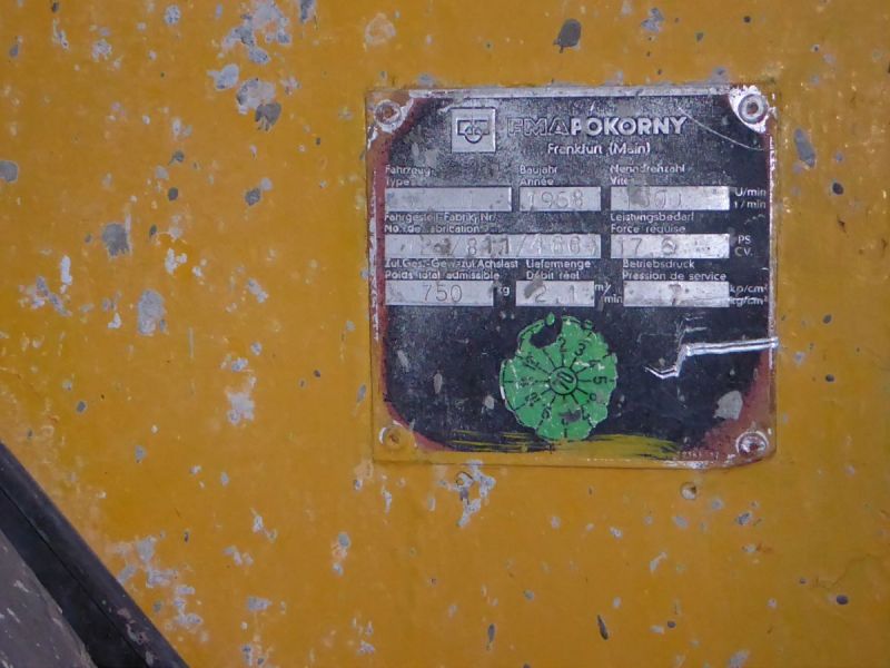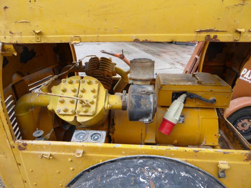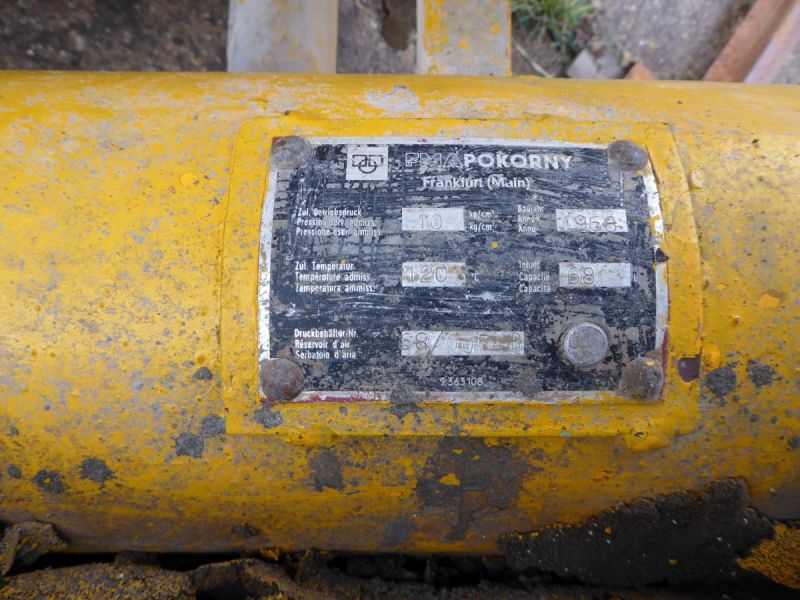 Unbeachtete, aber notwendige Geräte auf der Baustelle sind Kompressoren. Heute werden die-se hauptsächlich zum Antrieb von Druckluftmeiseln oder bei Beschichtungsarbeiten zum Sand-strahlen benötigt. Als auf der Baustelle noch genietet wurde benötigte man Druckluft zum Be-treiben der Niethämmer. Bei einem Baustellenkompressor sind die Einheiten Motor und Druck-lufterzeuger auf einem mobilen Rahmen, oftmals als Anhänger auf Rädern, aufgebaut. Dieser Rahmen ist teilweise als Druckbehälter zum Speichern der erzeugten Druckluft ausgebildet. Als Motor dient sowohl ein Elektro- als auch ein Verbrennungsmotor, wenn keine ausreichende elektrischen Anschlüsse vorhanden sind. Ein alteingesessener Hersteller war die Firma FMA Pokorny aus Frankfurt. In einer Baufachzeit-schrift aus dem Jahr 1922 war bereits zu lesen: "Untrennbar verbunden ist die Entwicklung des Kompressorenbaus und die Fabrikation von Druckluft-werkzeugen mit der Frankfurter Maschinenbau AG, vormals Pokorny & Wittekind. Seit mehr als einem Jahrzehnt ist die FMA Pokorny führend. Sowohl nach Güte wie auch in der Zahl der fabrizierten Kom-pressoren und Druckluftwerkzeuge wird die FMA von keinem Werk Europas übertroffen." Bereits 1959 ging die Firma in den DEMAG-Verbund ein, ebenfalls ein Hersteller von Druckluft-werkzeugen. Seit 1973 firmierte sie dann unter Mannesmann-Demag, zehn Jahre später erfolgte die Auslagerung an die Firma Strohm Karl Gänssle GmbH & Co KG in Stuttgart. Seit 2009 wer-den die Geräte nun unter der Firmierung MD Drucklufttechnik GmbH & Co KG in Stuttgart her-gestellt und vertrieben. Unser Kompressor war bis zum Jahr 2009 bei der Firma Heberger in Altlußheim im Einsatz, be-vor er zur weiteren Erhaltung der IghB übergeben wurde.