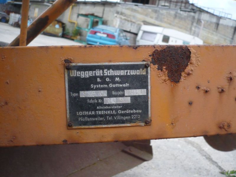 Im Jahr 2009 erreichten uns zwei ungewöhnliche Geräte. Es handelt sich dabei um zwei Wege-baugeräte oder Anhängegrader. Diese können von einer Zugmaschine in Form eines Traktors, Unimogs oder Muldenkippers gezogen werden. Die Fa. Trenkle war ein in Villingen-Schwenningen, OT Pfaffenweiler, ansässiges Unternehmen, welches ab 1972 Kommunalfahrzeuge ähnlich dem bekannten Multicar produzierte. Lothar Trenkle begann als Dorfschmied bevor er die ersten Fahrzeuge und Geräte baute. Anbaugeräte wie Schneepflüge, Schneefräsen, Mäh- und Mulchgeräte und Kehrbesen wurden sowohl in Eigenregie als auch in Zusammenarbeit mit der Fa. Schmidt, St. Blasien, gebaut. Eine frühe Entwicklung waren Anhängewalzen für Raupenschlepper, wahlweise mit eigenem Motor oder Zapfwellenantrieb. Ein weiterer Geschäftszweig ist der Bau und der Einsatz von Grabenfräsen im eigenen Lohnunternehmen. Anfangs auf Basis von Kramer 3-Achs Sonderfahr-gestellen, später hauptsächlich auf Unimog-Basis. Dieser Geschäftszweig besteht heute noch als Lothar Trenkle GmbH &Co. KG . 1986 wurde die Firma Trenkle an die Fa. Kramer / Gutmadingen verkauft. Das Werk wurde von Kramer weiter betrieben. Nun wurden die Fahrzeuge unter der Bezeichnung Kramer Tremo hergestellt und verkauft. 1998 wurde das Konzept an Multicar verkauft. Multicar ist mittlerweile in der Hako-Gruppe aufgegangen und nur noch Typenbezeichnung. An das Weggerät Schwarzwald erinnert sich heute niemand mehr.