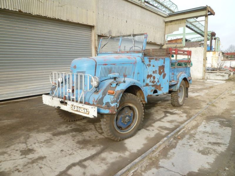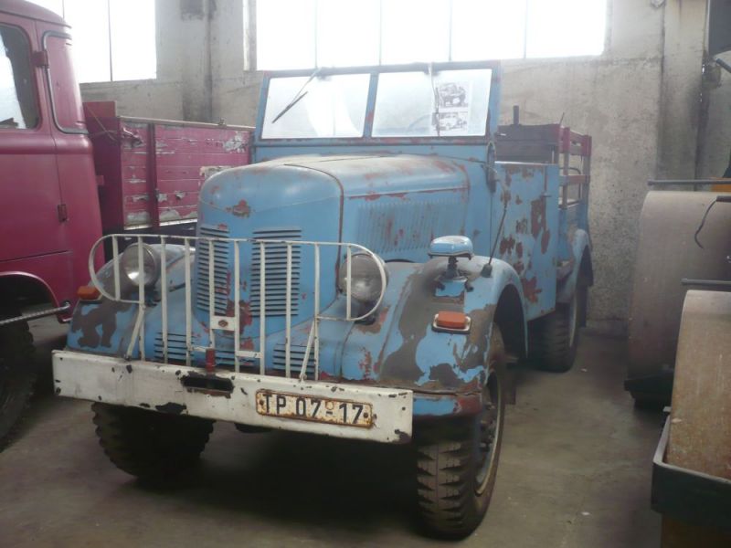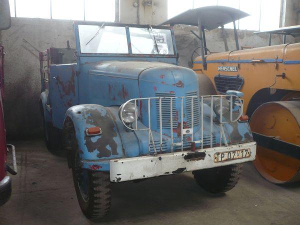 Ehemaliger Sanittskraftwagen (Sanka) mit Sonderhinterfeder. Originalmotor, Original-Reserverad. Hersteller: Gustav Hiller Phänomen-Werk AG, Zittau Dieser Lastwagen wurde im Jahr 1944 gefertigt, kurz bevor die Firma Drautz ausgebombt wur-de und keine Blechfahrerhäuser mehr liefern konnte. Er war ursprünglich als Sanka mit einem Kofferaufbau ausgerüstet. Er hat bereits die vereinfachten Vorderkotflügel der Produktionsver-einfachung von 1944. Zu erkennen ist die ursprüngliche Verwendung an der Sonderhinterfeder. Es stützt sich die Blattfeder über einen Kniehebel auf eine längs liegende Spiralfeder ab, damit die verwundeten Soldaten nicht im Sanitätskoffer herumpurzeln. Nach Kriegsende kam er zur Tschechischen Feuerwehr der Stadt Kladno und wurde mit einer falschen Nachkriegspritsche versehen. Im Jahr 1984 wurde er ausgemustert und stillgelegt. 1996 kam der Wagen fahrunfä-hig von Kladno nach Karlsruhe. Dort erfolgte der Abbau der falschen und verwurmten Pritsche. Das Fahrzeug hatte früher ei-nen Frontschaden gehabt, inzwischen ist die Stoßstange vom baugleichen Nachkriegsmodell angepasst
