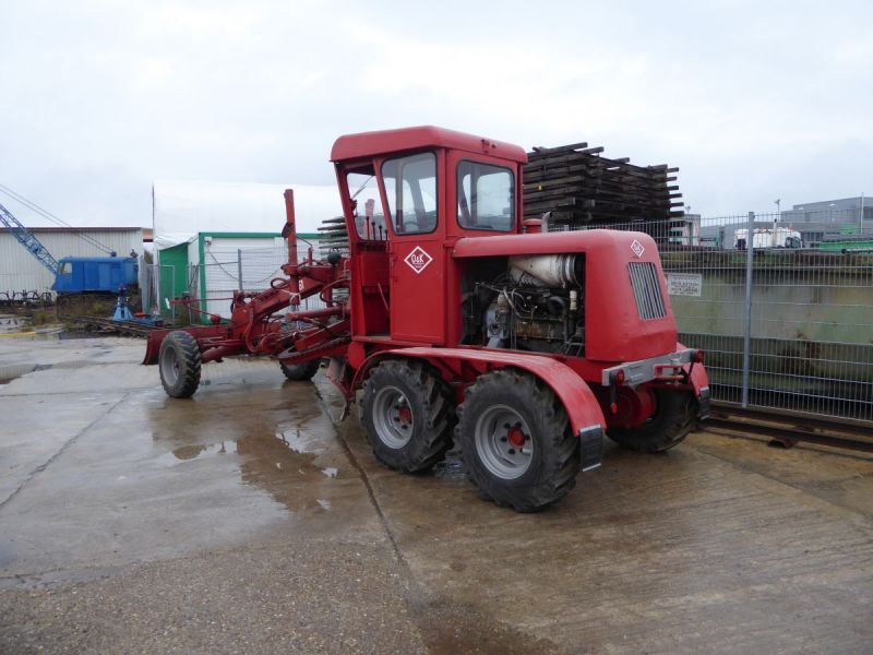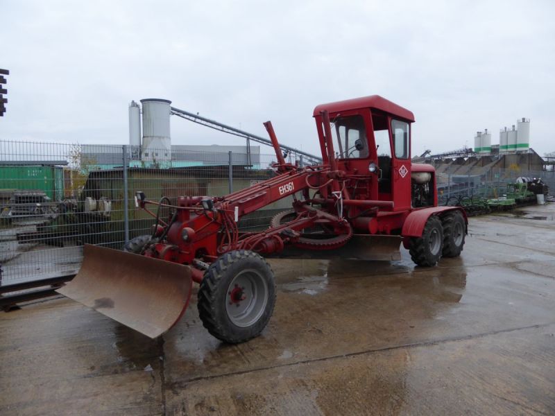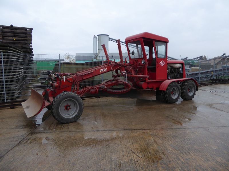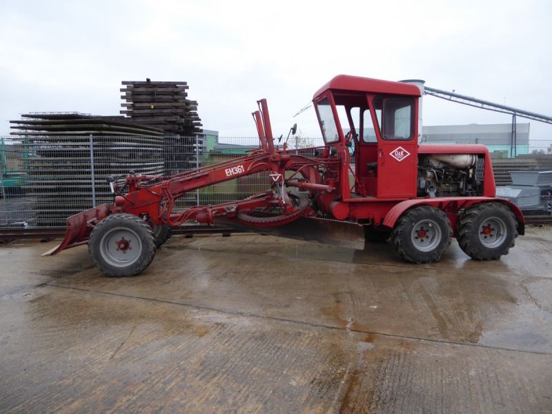 Bereits Anfang der 1950er Jahre begann Orenstein & Koppel mit der Graderfertigung in Dort-mund. Zunächst waren 5 verschiedene Grader, auch Erdhobel genann, im Programm. Auf-grund des hohen Bedarfs an Strassenbaufahrzeugen konnte schnell eine Serienfertigung auf-gebaut werden. Die robusten Maschinen verfügten über zwei pendelnd aufgehängte An-triebsachsen, welche das Planieren unabhängig von Bodenwellen machte. Über den großen Radstand konnten Unebenheiten gut überbrückt werden. Anfang der 1970er Jahre wurde das Grader-Pro¬gramm ge¬strafft, es standen dann nur noch der 6,9to schwere EH361 so¬wie der 12,2 to schwere EH580 zur Verfügung. An der moder¬nen Ma-schine wurden schon alle maßgebli¬chen Verstell¬bewegungen hydraulisch ausgeführt. Das mitt-lere Schild kann um 45° nach aussen ge¬schwenkt werden, da¬mit können seitlich an der Straße Bö¬schungen angelegt werden. Der große Radstand hatte einer¬seits den Vor¬teil, dass sich Bode-nunben¬hei¬ten weni¬ger negativ auswirkten, allerdings ist die Maschine weni¬ger wen¬dig, was sich beim Rangie¬ren auf dem Hof bemerk¬bar macht. Für den Ein¬satz ist das unerheblich, da im Einsatz¬gebiet im Straßen und Autobahnbau sowieso große Kurven angelegt werden. Unsere Ma¬schine stand mit weiteren Maschinen in einer Karlsru¬her Forschungseinrichtung im Ein¬satz, von wo wir sie im Jahr 2013 übernehmen konnten. Nach der Überholung des Antriebs ist die Maschine jetzt wieder einsatzbereit. Da Bedienen der Maschine stellt hohe Anforderun-gen an den Fahrer. Während heutige Grader GPS-gesteuert arbeiten war hier ein hohes Maß an Erfahrung und Einfühlungsvermögen des Fahrers gefragt.