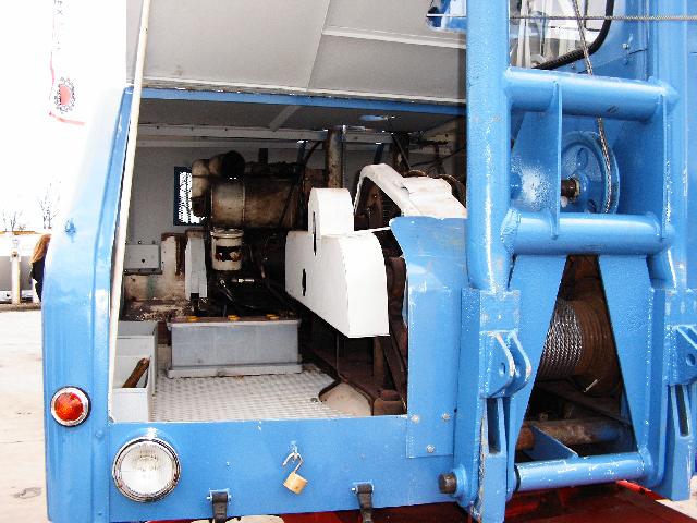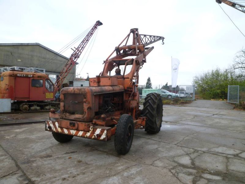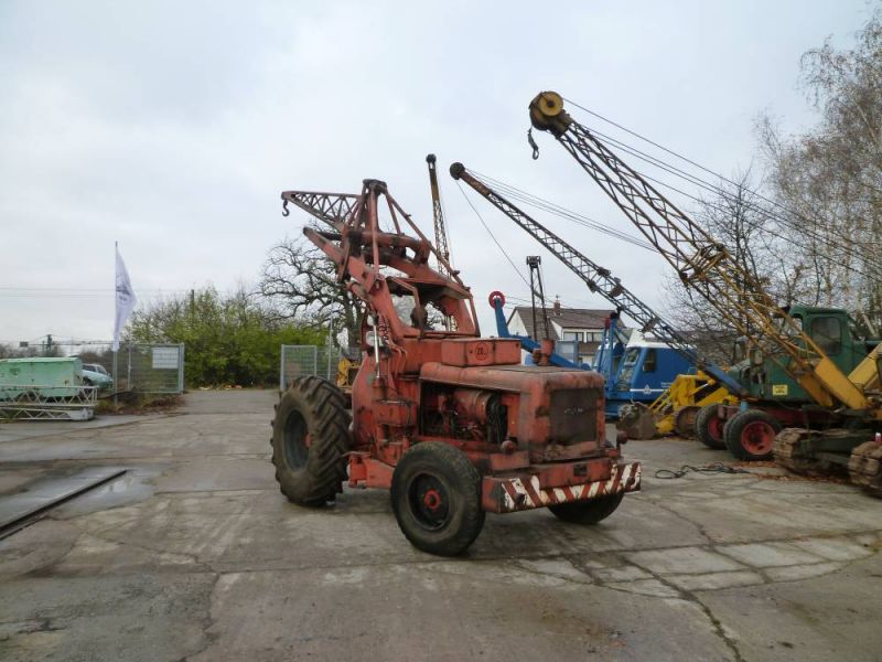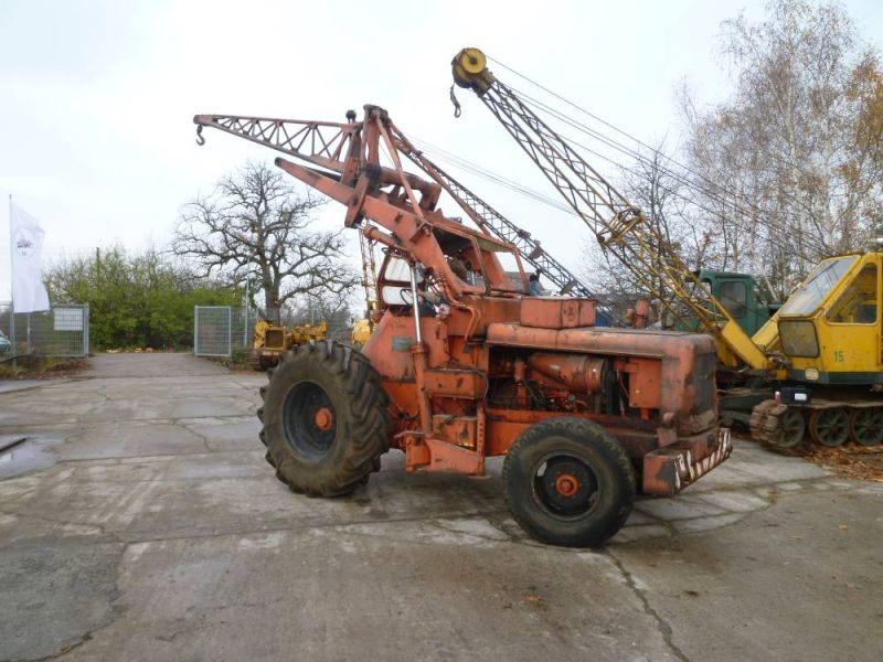 Baujahr 1971, restauriert, hochgesetzte Kabine, Auslegerhochlagerung, Gittermast mit Greifer und Kraneinrichtung, differentialgebremste Winden