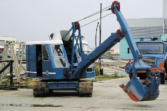 Die Maschine wurde von der Firma Vogler-Wasserbau in Hamburg beschafft. Sie war mit Laufwerk auf einem Ponton abgestellt. Gemeinsam mit einem festmontierten O&K L251 auf eigenem Schiff waren beide Geräte im Mündungsbereich der Elbe mit Wasserbauarbeiten beschäftigt. Im April 2004 hat die IghB beide Schiffe zur Erhaltung angeboten bekommen. Die Maschinen hätten einen interessanten Fahrweg genommen: Von Hamburg die Elbe stromaufwärts zum Elbeseitenkanal, dann über den Mittellandkanal, Emskanal, Dortmunder Emskanal, Hammkanal in den Rhein und dann bis nach Germersheim. Leider war die IghB damals für ein solches Unternehmen noch zu klein und so wurde die Maschine ohne Schiff zunächst von einem Mitglied in Hannover gekauft und war dort noch einige Jahre auf Treffen zu sehen. Das Schiff wurde verschrottet, das Schwesterschiff liegt in Hamburg im Museumshafen. Im Februar 2008 kam die Maschine dann doch in unsere Sammlung und wurde im gleichen Jahr mit einem Hochlöffel ausgerüstet und kam an der historischen Baustelle im Steinbruch in Wössingen in Einsatz. Mittlerweile wird die Maschine von einem schweizer Vereinsmitglied restauriert