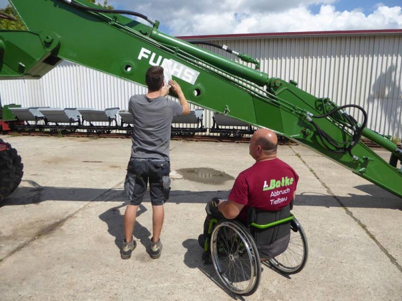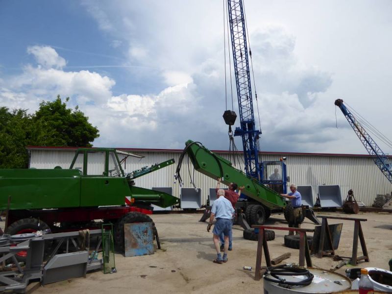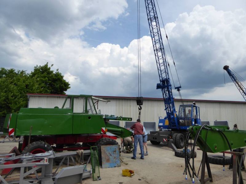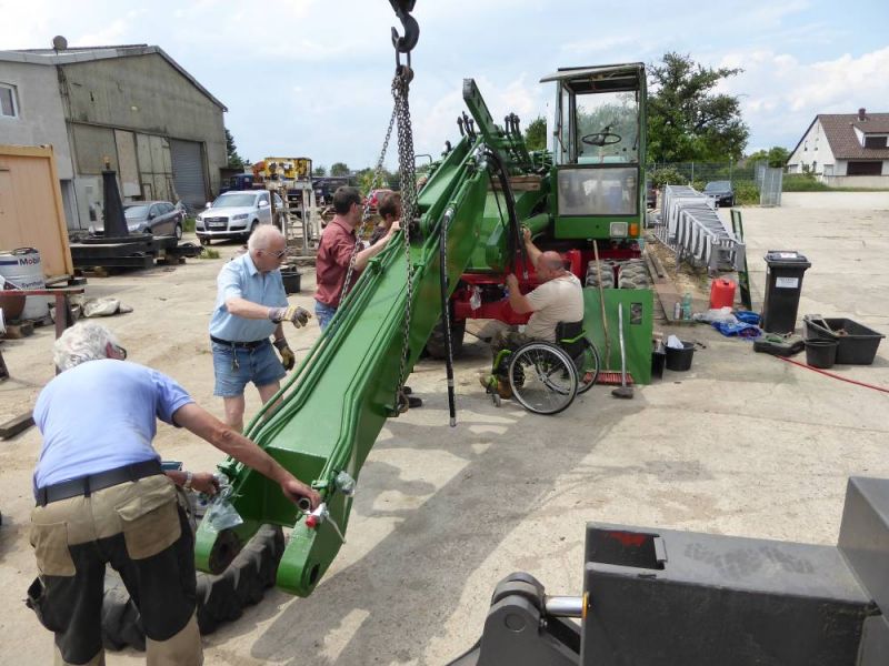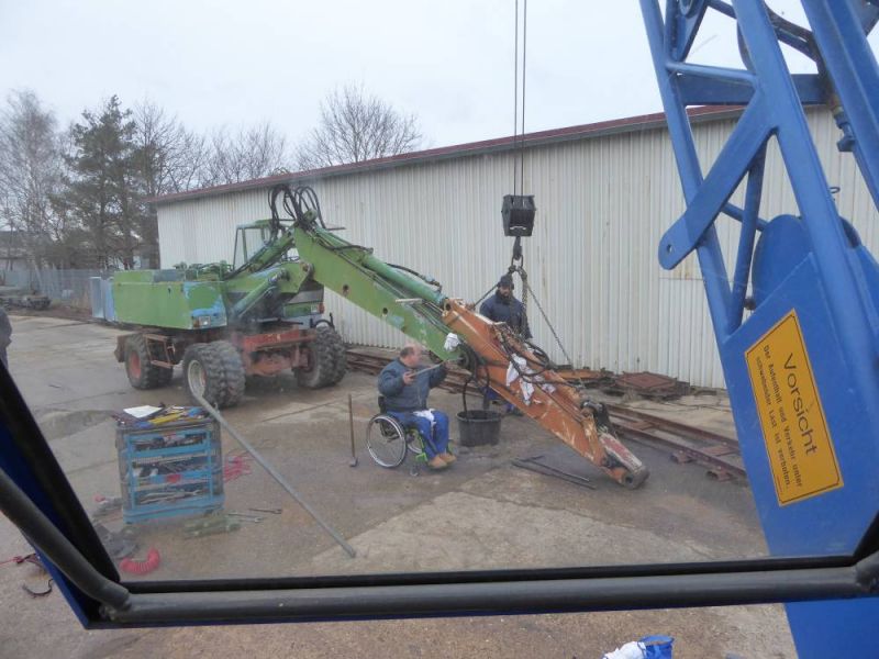 Die ersten Fahrbewegungen werden durchgeführt. Als erstes wird der Auslegerstiel demontiert. Zur Hilfe kam da unser Fuchs 110