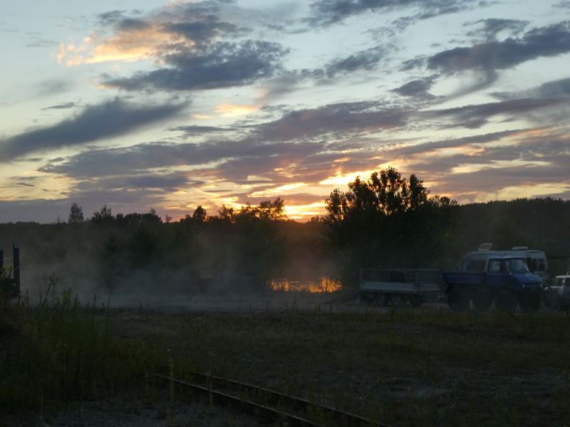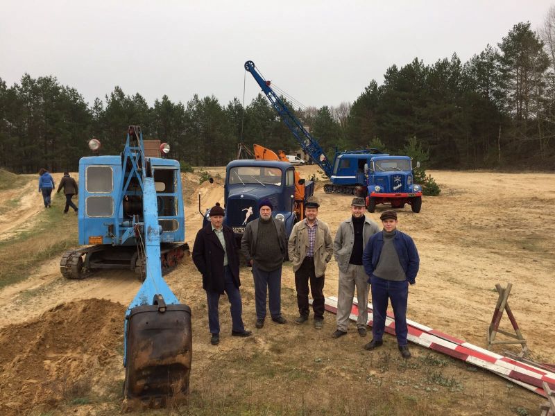 Einen Eindruck einer völlig fremden Welt bekamen einige unsere Mitglieder in der vergangenen Woche, als wir mit vier Fahrzeugen zu Filmaufnahmen im Umland von Berlin unterwegs waren. Bereits am 01. April liefen die Transporte, am Sonntag danach folgte die Mannschaft. Noch am selben Abend wurden die Maschinen abgeladen und aufgestellt. Der Drehort, ein ehemaliges Militärgelände, hätte sich hervorragend für eine historische Baustelle geeignet.