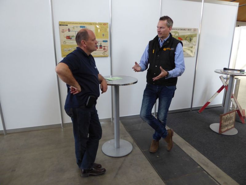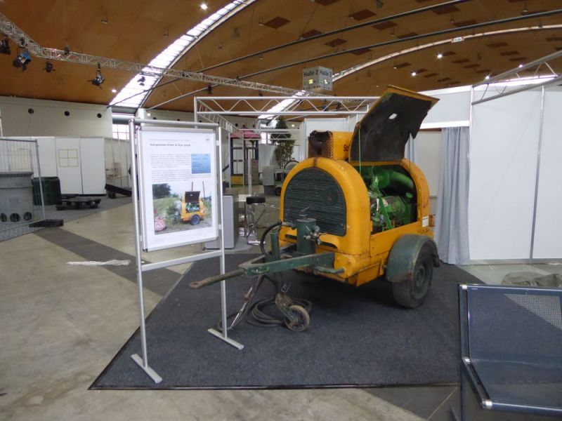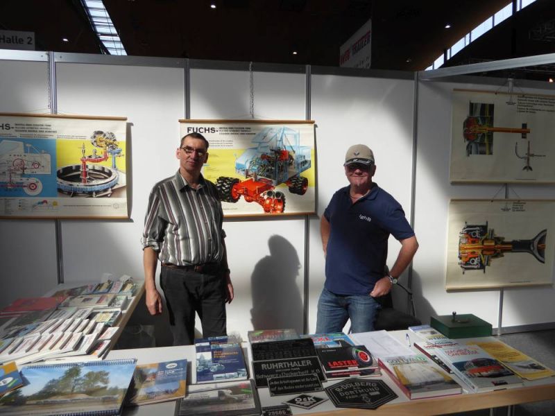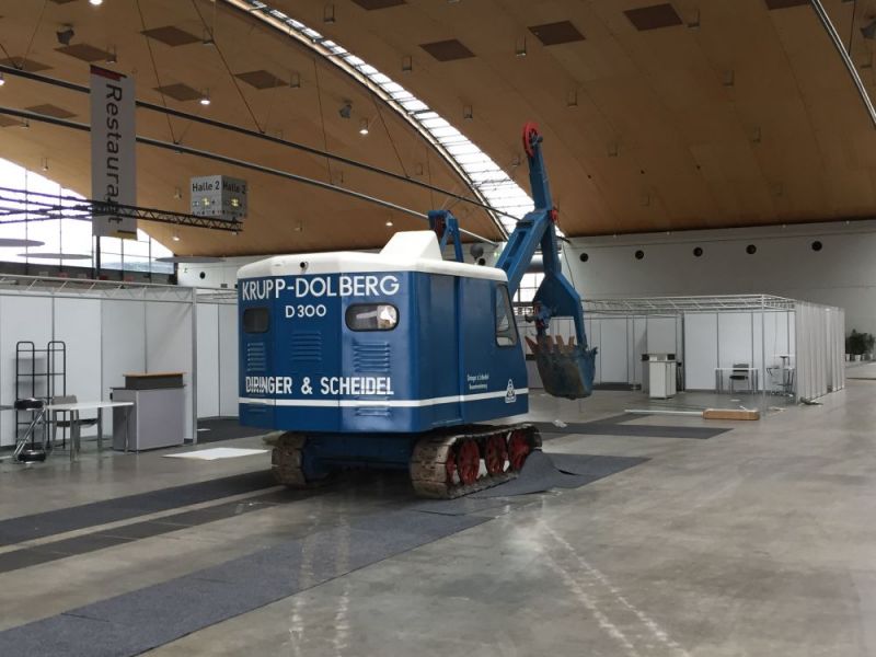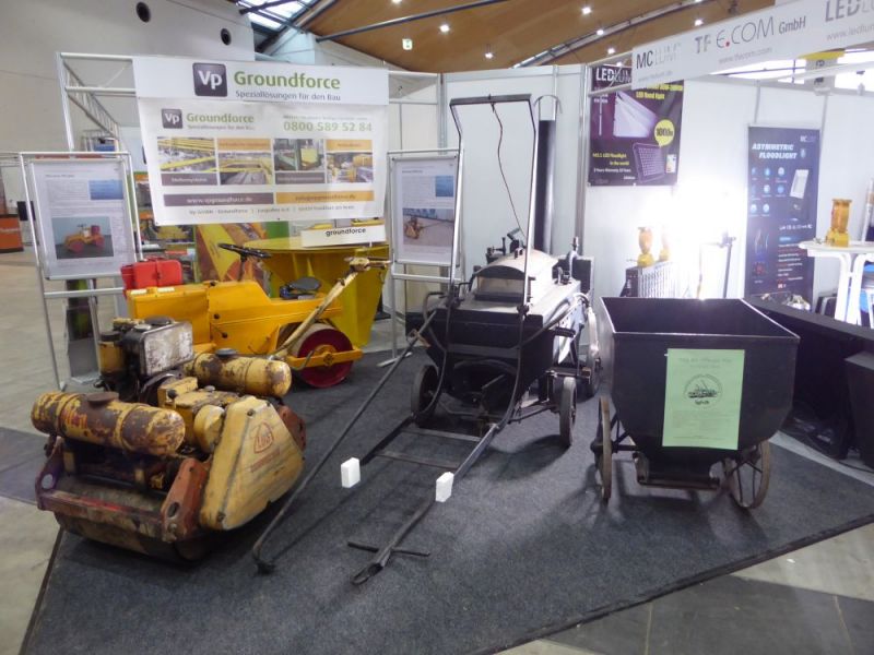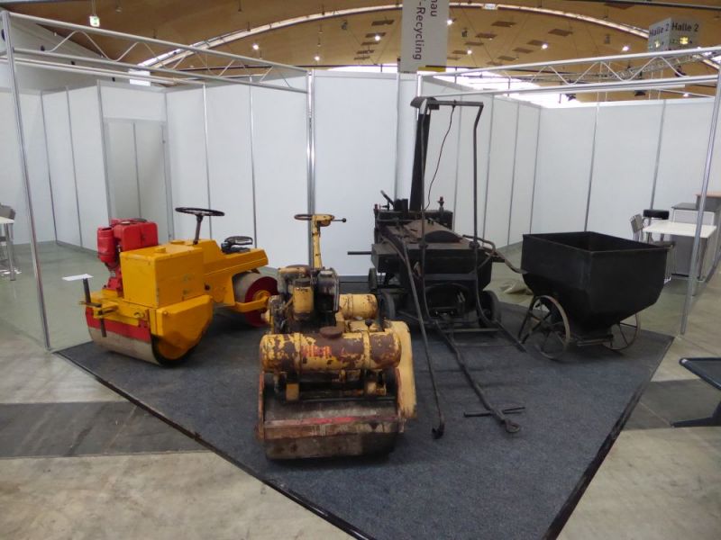 Zum ersten mal fand die Doppelmesse Recycling Aktiv / Tiefbau Live in Karlsruhe auf dem Gelände der neuen Messe statt. Ebenfalls zum ersten mal konnten wir die Messe mit unseren Maschinen bereichern. Die Messe war in einen Ausstellungsbereich in der Halle 2 sowie einem Aktionsbereich auf dem Freigelände gegliedert. Dort wurden die neusten Entwicklungen im Tiefbau und Recyclingbereich präsentiert. Wir hatten unsere Maschinen in Halle 2 aufgebaut. Neben einem Hauptstand wurde ein zweiter Stand sowie weitere Arrangements eingerichtet. Zwei Lkw mit Tieflader, die Hanomag Laderaupe K5b, der Dolberg 300 mit Tieflöffel, unsere Vibromax-Walzen, zwei Betonmischer und verchiedene Kleingeräte begeisterten die Besucher. Der Fuchs 301 mit einer Sammlung von fünf verschiedenen Arbeitsgeräten stellte den Kontrast zu den modernen Maschinen und Arbeitsgeräten auf dem Freiglände her. Auf unserem Stand konnten Besucher mit unseren Mitgliedern fachsimpeln. Aussserdem war unser Shop eingerichtet und so manches Buch fand seinen neuen Leser. Durch die Messe konnten wir viele wichtige Kontakte knüpfen. Insbesondere der Kontakt zu verschiedenen Medien konnte ausgebaut werden. So wurde unter anderem ein Interview mit Bauforum24.tv auf der Messe aufgezeichnet.