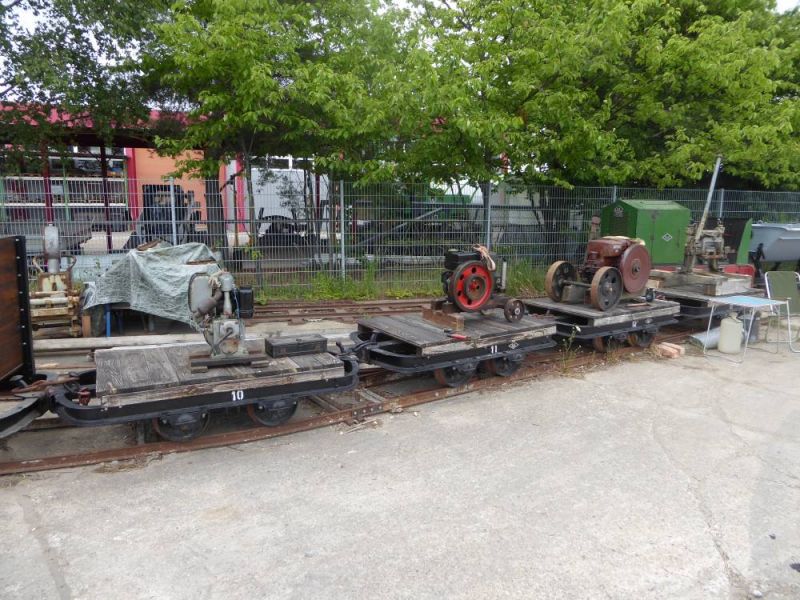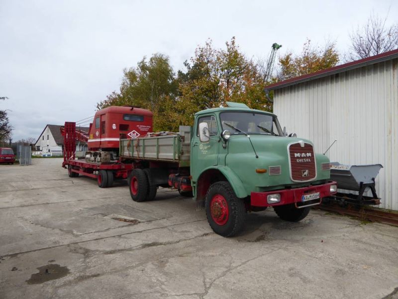 Die erste Ausfahrt in diesem Jahr führte in die Pfalz. Zunächst nach Bad Dürkheim, dort lag noch eine Tieflöffeleinrichtung für einen Fuchs 301, dann ging es nach Bad Kreuznach um noch einen Restbestand an Kipploren abzuholen. Nach der "Bäder-Tour" kam dann ein vollbeladener Zug auf dem Gelände an.
