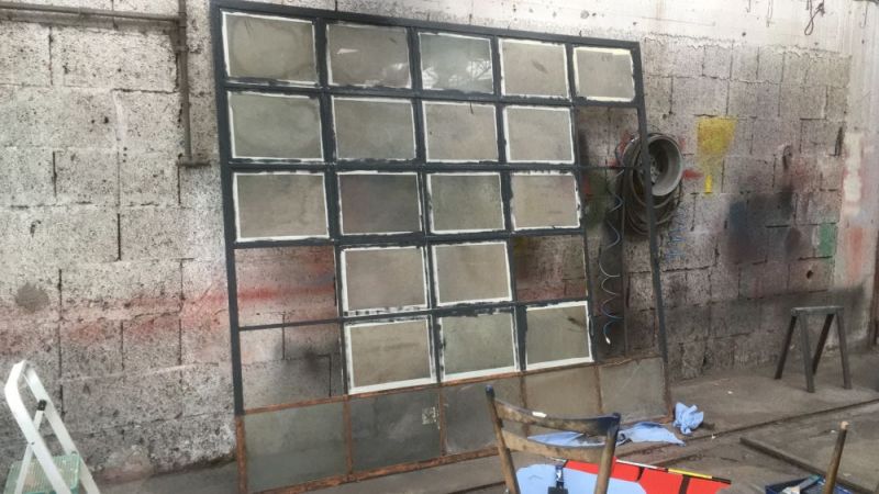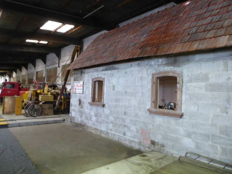 Sowohl die Fenster als auch die Steine wurden beim Abriss des alten Lokschuppens in Menzingen geborgen. Auf den Ziegeln finden sich teilweise noch Anschriften in Sütterlin-Handschrift. Bemerkenswert sind auch die Fenster, welche nur gesteckt und gekümpelt sind, ganz ohne Schweißverbindung.