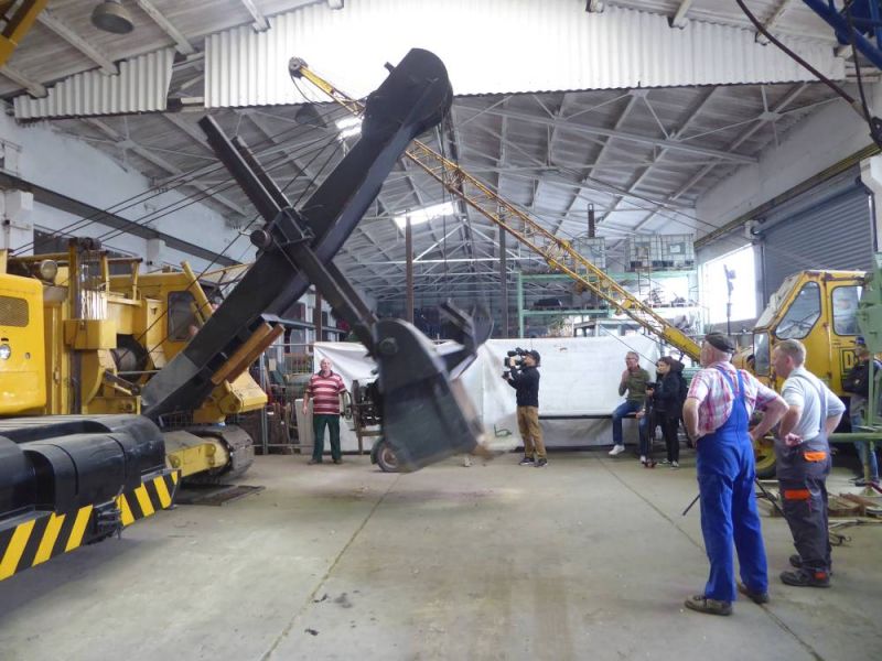 Die Maschine musste ihren Platz verlassen und sollte eigentlich verschrottet werden. Nachdem abgeklärt wurde, dass der Bagger dauerhaft auf dem Hof der IghB erhalten werden kann, konnten die Ankaufverhandlungen durch ein Mitglied gestartet werden. Bereits in der letzten Woche des vergangenen Jahres fuhren Mitglieder von uns nach München um den Bagger versandbereit zu machen. Das bedeutete: