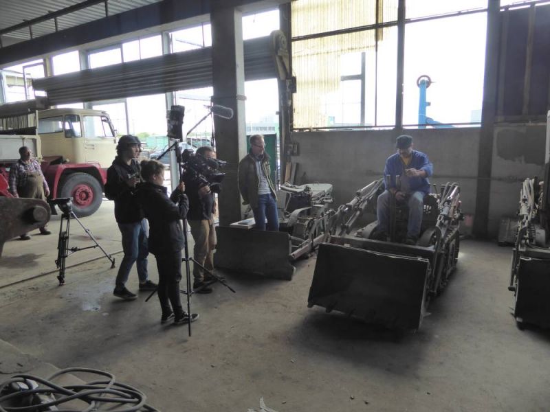 Der zweite Drehtag sollte mehr Bewegung versprechen. Da standen unsere Maschinen im Mittelpunkt. Ab und zu eine Maschine umsetzen, dann wurden wieder Szenen gedreht. Und immer wieder mal wiederholt. Mal störte ein Flugzeuggeräusch, mal der Rückfahrpiepser aus einem nahgelegenen Industriebetrieb. Mal kam die Sonne hervor und störte den Anschluß zur vorhergehenden Szene, mal setzte Regen ein. Dann wiederum spiegelte sich das moderne Equipment in den Fahrzeugen, was man erst auf den Aufnahmen sah. Eine gute Szene zu drehen ist aufwändig. So wurde das auch ein langer Drehtag. um 19.30 Uhr war dann alles im Kasten und wir hatten Feierabend. Eigentlich noch nicht ganz. Noch am selben Abend wurden die Maschinen verladen und wir traten die Heimreise an.
