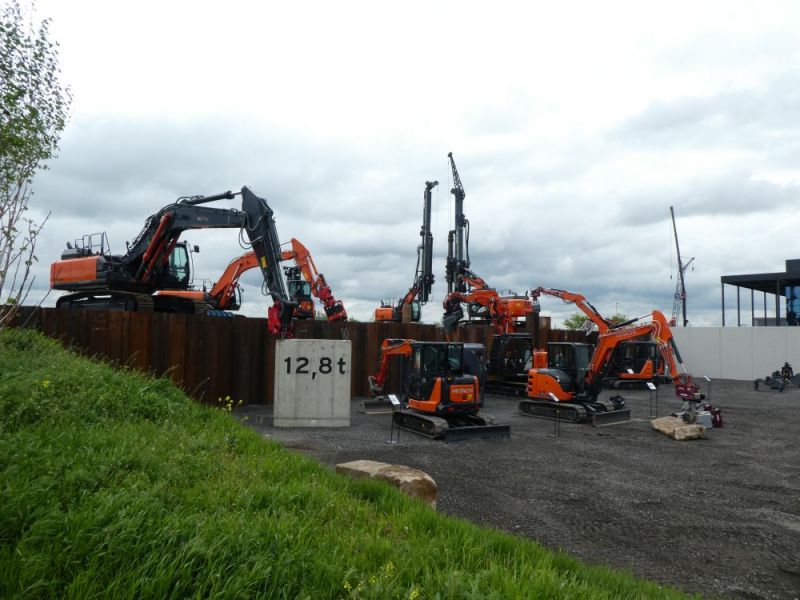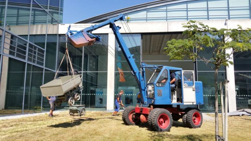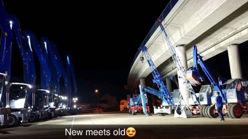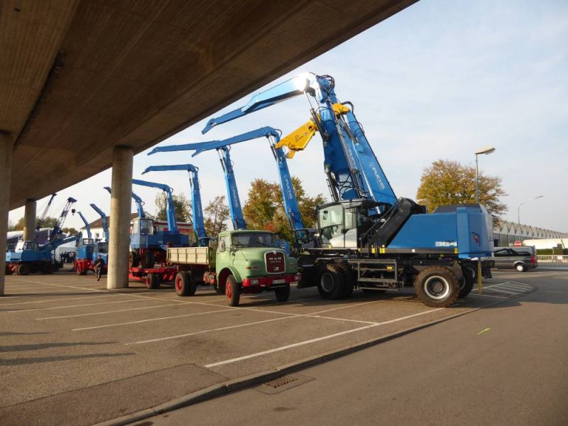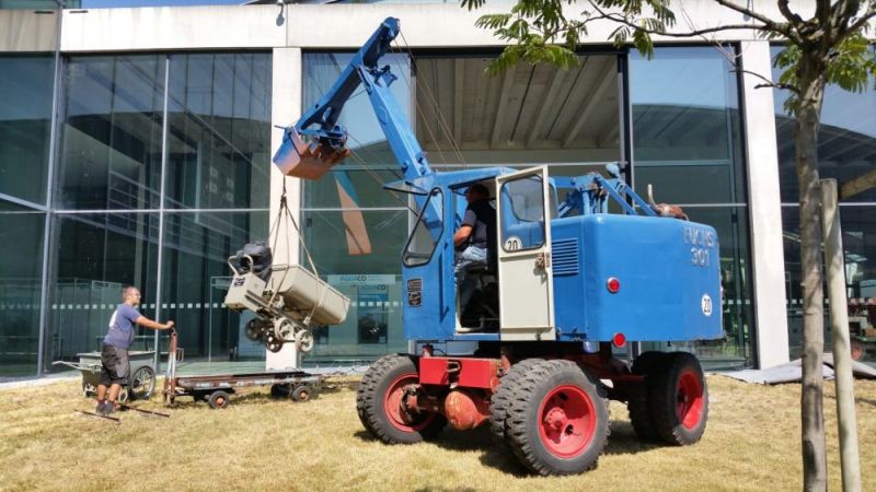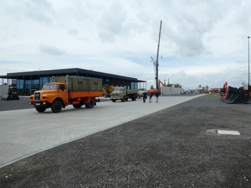 Zu den Feierlichkeiten stellten wir insgesamt 6 Maschinen zur Verfügung, mit welchen die Historie der Firma dokumentiert wurde. In den vergangenen Wochen wurde diese vorbereitet und nach Bad Schönborn gefahren. Am Donnerstag und Freitag standen diese auf dem Parkplatz, gegenüber der aktuellen Produktpalette, am Samstag wurden dann einige Maschinen auf den Vorführplatz im hinteren Bereich des Werksgeländes gefahren. Dort kamen dann auch einige ehemalige Mitarbeiter, welche selbst noch an den Fuchs 301 gearbeitet hatten um noch einmal solche Maschinen in Einsatz zu erleben und sogar selbst zu bedienen. Umgekehrt konnten wir bei der Gelegenheit auch Nachwuchs auf den Maschinen schulen. Insgesamt war das Wochenende ein tolles Erlebnis für unsere Mannschaft.