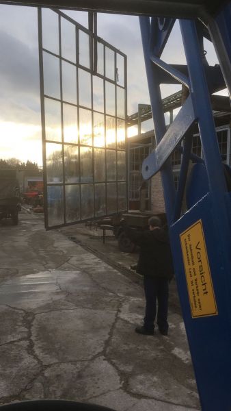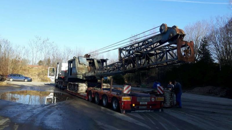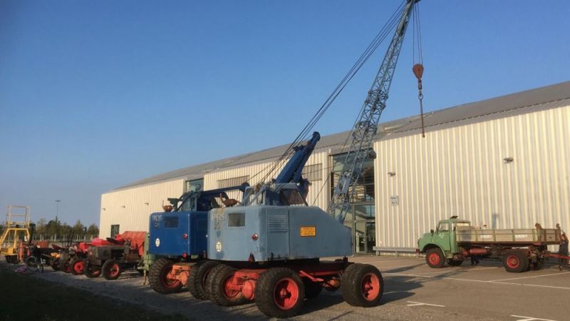 Am vergangenen Donnerstag konnten wir eine weitere interessante Maschine in unsere Sammlung aufnehmen. Der Coles-Kran Typ Aeneas 1210C wurde 1957 von der Firma Weserflug in Einswarden für 80.000 DM beschafft. Die Firma Weserflugzeugbau GmbH wurde 1934 gegründet und war viertgrößter Flugzeughersteller während des zweiten Weltkriegs. 1961 ging diese als Zusammenschluss mit Focke-Wuff in die Vereinigte Flugtechnische Werke auf, wleche wiederum 1981 Teil von Messerschmidt-Bölkow-Blohm wurde. Mittlerweile heit die Firma Premium Aerotec. So hat der Kran eine wechselvolle Geschichte erlebt, ohne je seinen Standort zu verlassen. Als Hofkran ist die Maschine zwar sehr wendig, kann aber nur mit Hilfe eines Tiefladers seinen Standort großräumig wechseln. So trat er auch seine über 600km weite Reise, weg vom drohenden Schneidbrenner, in unsere Sammlung an. Im früheren Werk wurde er sehr gut gepflegt und offensichtlich iimmer unter Dach abgestellt. Anders lässt sich sein guter Originalzustand nicht erklären. Der Kran ist mit nunmehr 60 Jahre noch immer foll funktionsfähig.