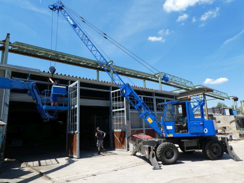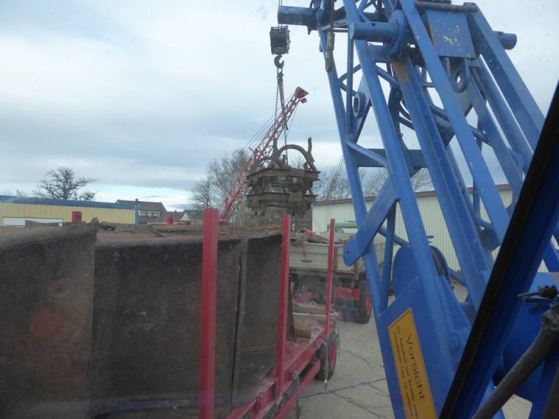 Bereits im vergangenen Jahr kam die Maschine aus Östringen zu uns. Dort wurde sie von einem Landwirt verkauft. Vorher stand sie im Dienst des Schifffahrtsamtes Aurich und war auf einem Schiff im Einsatz. Durch die hydraulische Abstützung, die größere Traglast und den längeren Ausleger ist die Maschine ein effektiveres Arbeitsmitttel auf unserem Gelände.