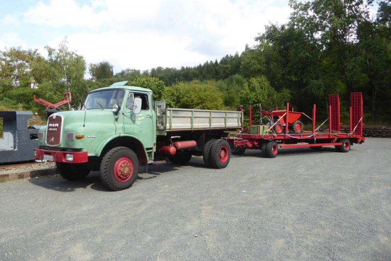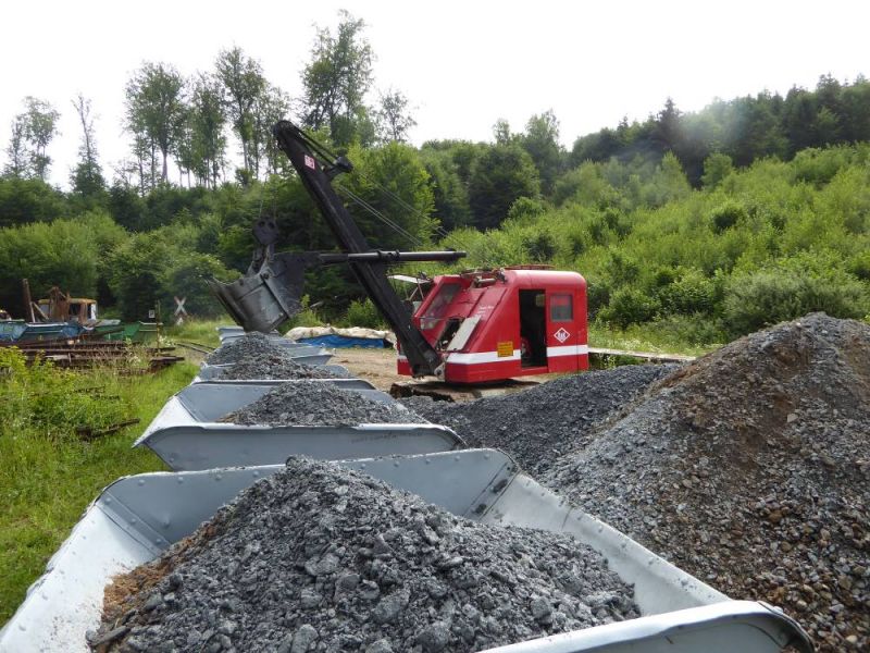 Am 16./17. Juni 2018 fand das 10. Kipploretreffen in der Grube Fortuna in Solms-Oberbiel statt. Eigentlich trifft sich da die Feldbahnszene, in diesem Jahr war jedoch auch die Ighb mit von der Partie. Rechtzeitig zum Treffen wurde eine gebremste Kipplore aus dem Jahr 1915 fertig restauriert, so das wir mit einem kompletten Zug, bestehend aus Lok, acht ungebremsten und am Zugschluß einer gebremsten Lore antreten konnten. So wurde unser Tieflader und das Zugfahrzeug beladen und auf die Reise nach Solms-Oberbiel geschickt. Alleine die Anfahrt hatte es in sich. Der Friedberg, kurz vor der Autobahnraststätte Wetterau verlangte viel vom alten MAN. Aber letztendlich kamen wir gut in der Grube Fortuna an. Dort war die Freude über die Leute von der IghB groß. Von unserem Mitglied aus Gießen kamen zwei Bagger und eine Laderaupe, vor Ort gab es einen großen Schotterhaufen zu verladen.