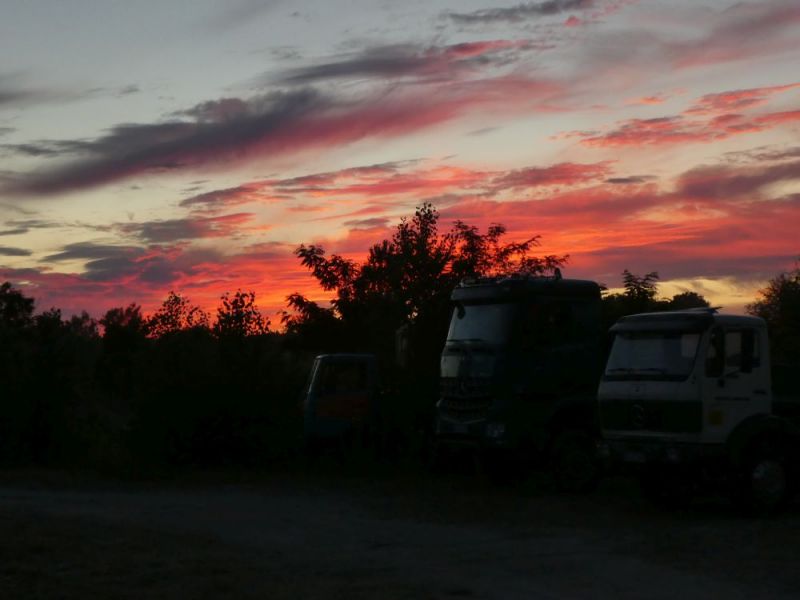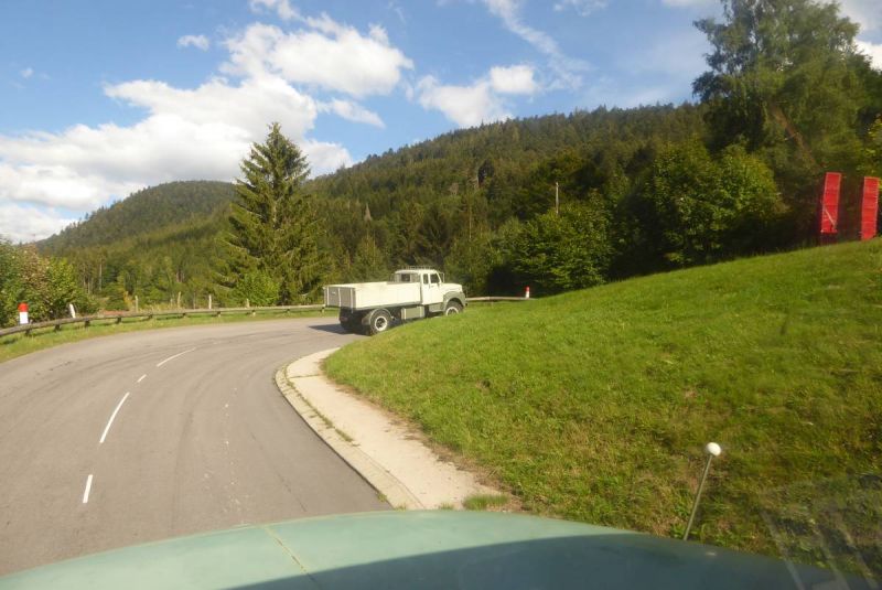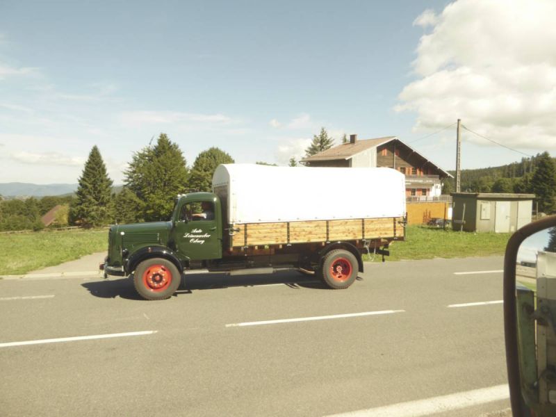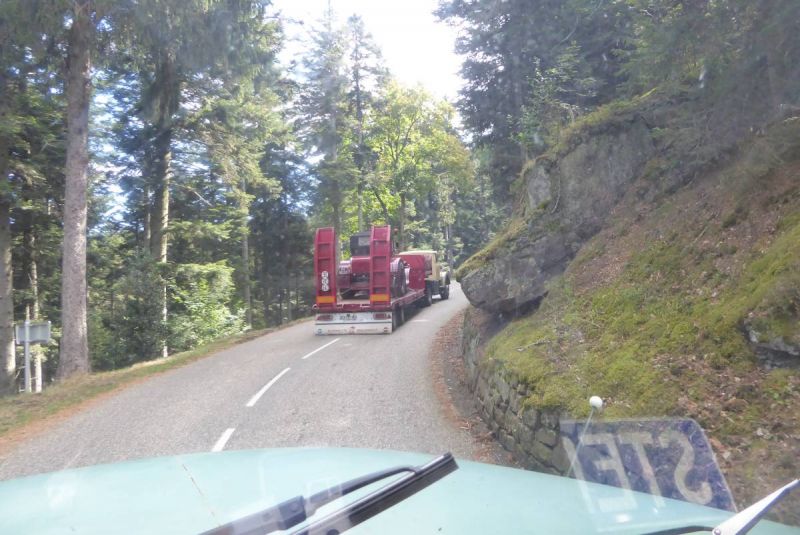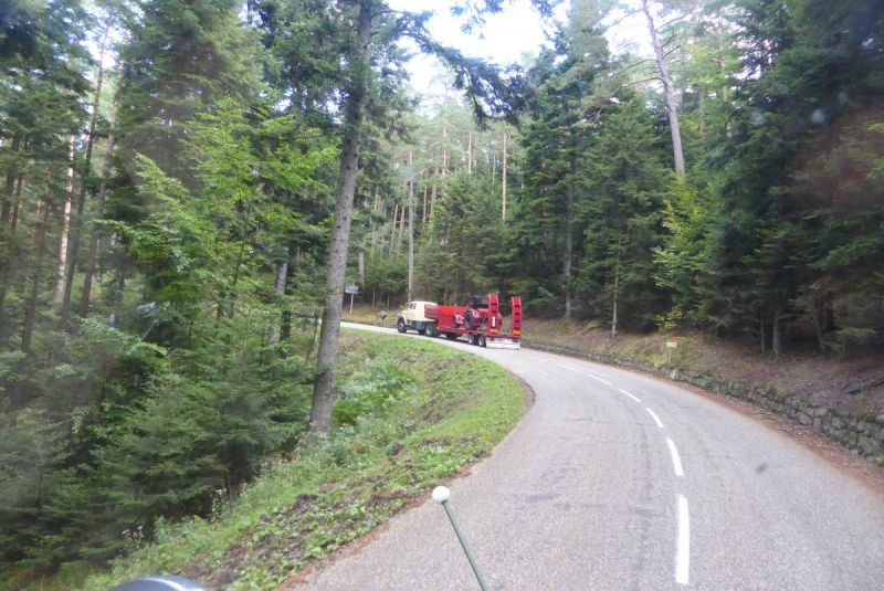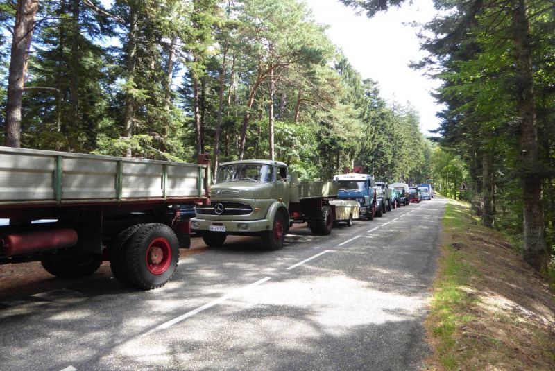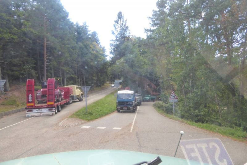 Anschließen ging es auf Tour durch die Vogesen. Nach der ersten Etappe von ca. 40km wurde auf dem ersten Pass das Mittagessen eingenommen. Danach waren unsere Lkw gefordert. Fast 100km ging es über die Vogesen bis nach Vomecourt in Lothringen. Zwei weitere Pässe waren zu überqueren. Am Nachmittag trafen wir dann auf dem Platz in Vomecourt ein. Nach und nach trafen auch die anderen Gruppen ein und am Abend standen 104 Lkw auf dem Platz. Nun begann die schon traditionelle Abendveranstaltung mit Flammkuchen und Dieselgesprächen. Tortz der hohen Teilnehmerzahl war das Ganze noch sehr familiär.