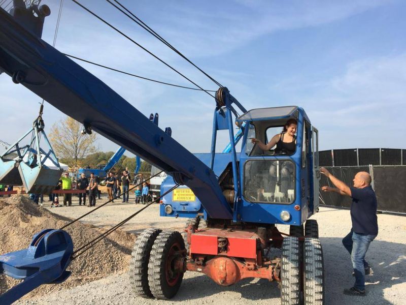 Stilgerecht wurde der Bagger mit historischem Gerät abgeholt.