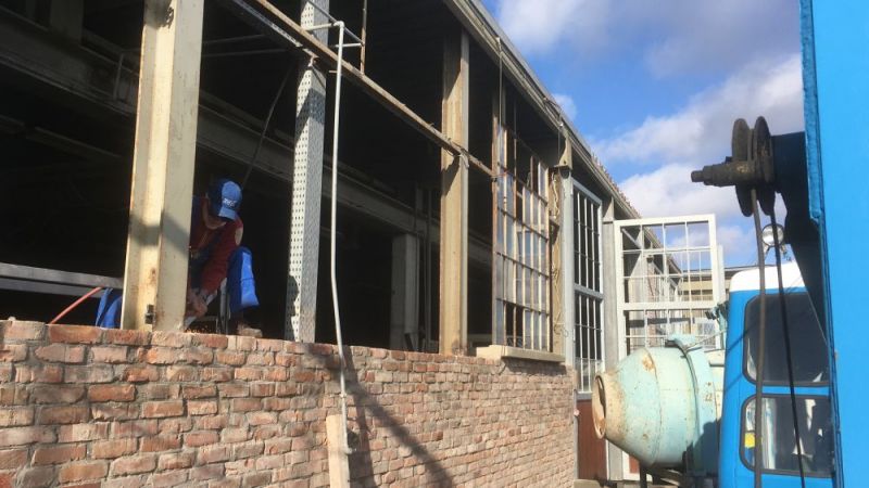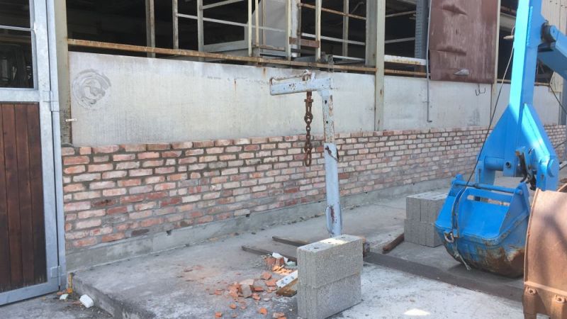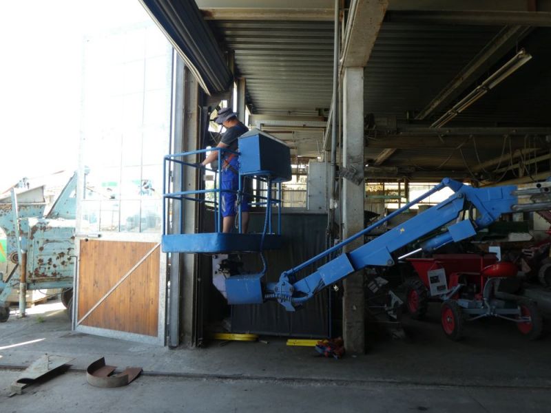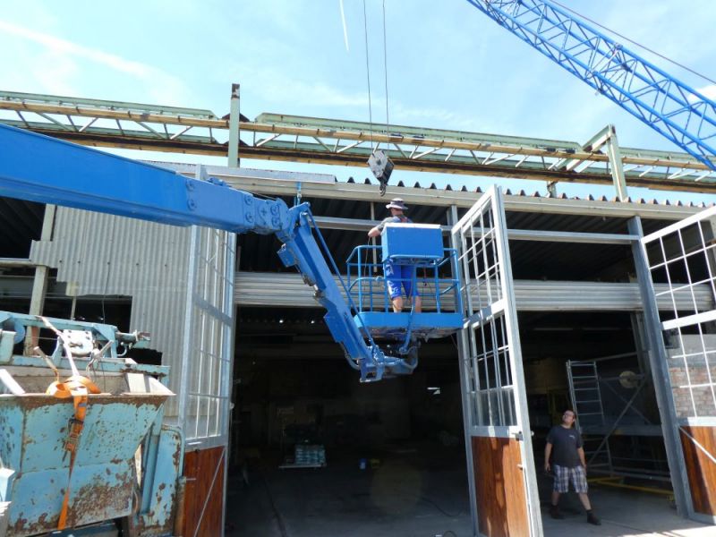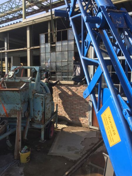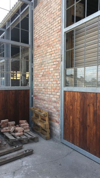 Zunächst konnten an der Ostfassade die letzten Tore montiert werden. Nun müssen die Füllungen eingebaut und die Zwischenräume zugemauert werden. Hier suchen wir noch einen Fachmann zur Unterstützung. Danach können die alten Rolltore demontiert werden.