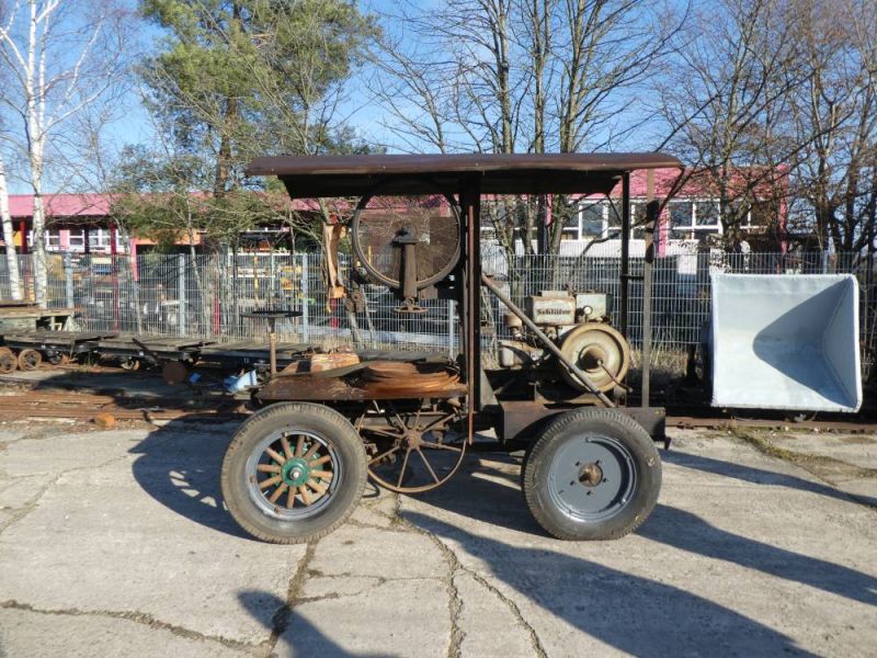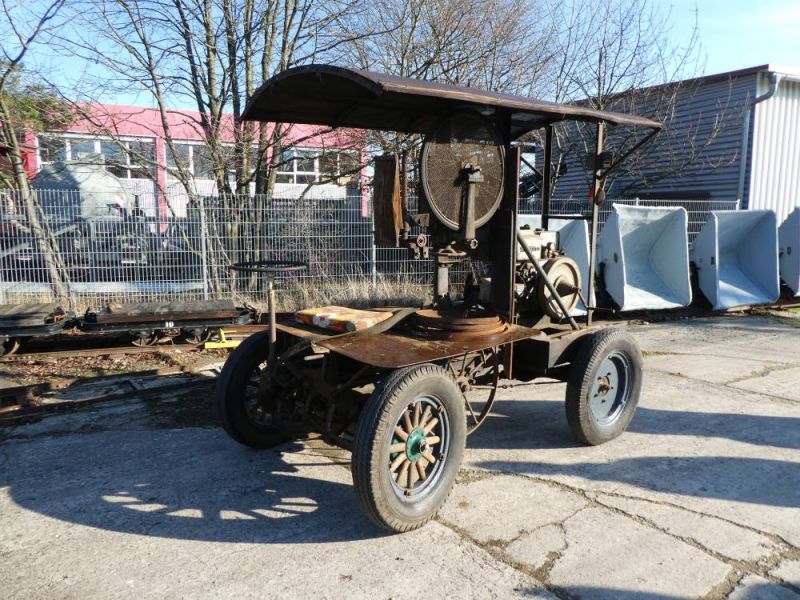 Bereits 2014 bahnte sich die Übergabe an, da die Maschine lange Jahre versteckt im Depot des Heimatvereins stand und der Öffentlichkeit nicht präsentiert werden konnte. Um die Maschine unter dem niederen Dach zu holen mussten die Räder demontiert werden und diese auf Rollen herausgefahren werden. Beim Aufpumpen der luftleeren Reifen platzte einer und beschädigte dazu noch eine Felge. Diese war stark vom Rost zerfressen und damit unbrauchbar. Nun musste zuerst die Felge nachgefertigt werden. Dies geschah in einem Stahlbaubetrieb in Helmsheim, dem Ort wo die Maschine einst gebaut wurde. Dazu mussten neue Mäntel und Schläuche besorgt werden, eine Reifengröße, die man heute auch nicht mehr an jeder Ecke bekommt. In dieser Zeit wurden die Holzspeichenräder komplett zerlegt und aufgearbeitet, die Holzteile abgeschliffen und mit Leinöl konserviert, die Stahlteile in dezenten Farben lackiert. Im Januar diesen Jahres war es dann so weit. Alle Teile fertig, die "neuen" Reifen montiert zog unser Bergungsteam los um die Maschine abzuholen. Die Maschine wurde aus dem Unterstand gezogen und die neuen Reifen montiert. Ein neues Problem ergab sich, als eine zentrale Mutter den Geist auf gab. Aber auch das wurde schnell gelöst. So konnte sich die Maschine am 26.01.2019, gezogen von einem Muldenkipper, in Schrittgeschwindigkeit auf den Weg in unsere Halle machen. Noch am selben Tag machten sich unsere Mechaniker an den Motor und schafften es, den Schlüter-Verdampfer wieder zum Laufen zu bringen. Davon konnte sich dann am darauffolgenden Samstag die Delegation des Heimatvereins und der ehemalige Besitzer in unseren Hallen überzeugen. Hier erfuhren wir, dass die Säge bereits 1926 von seinem Vater gekauft wurde und Ende der 1940er Jahre einen neuen Motor erhielt. Unser nächste Ziel ist, die Maschine im April beim Heimatverein vorzuführen.
