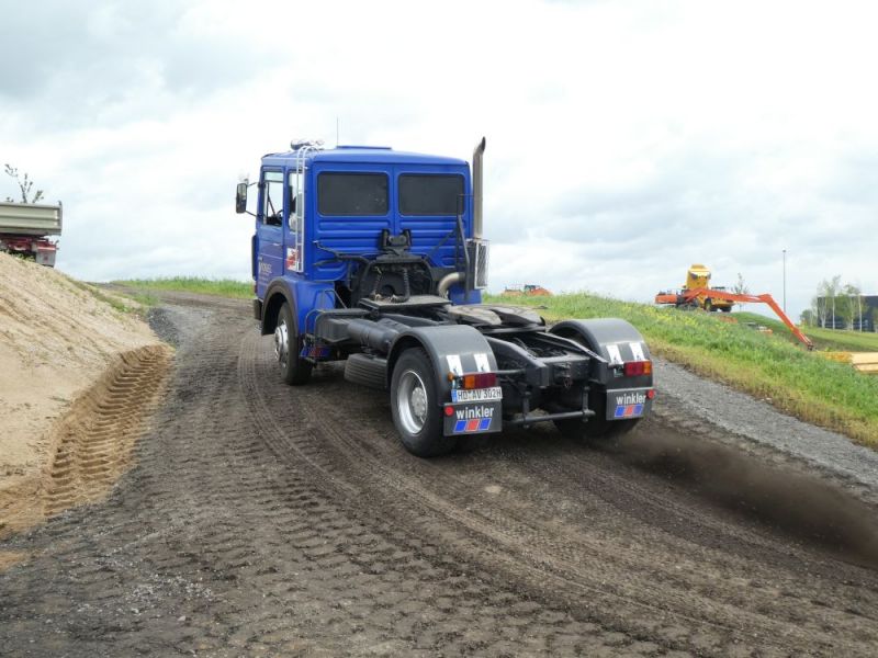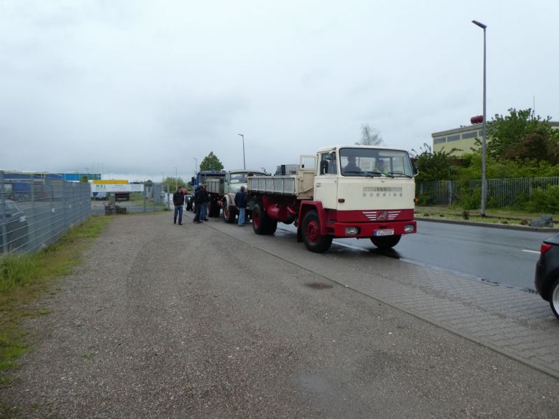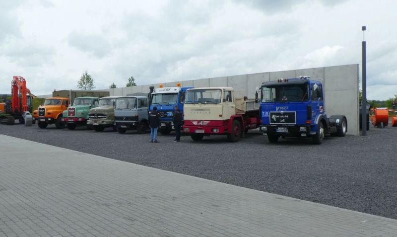 Am Samstag, 04.05.2019 trafen wir uns zur Frühjahrsausfahrt. Das Wetter war zunächst alles andere als angenehm, kalt und regnerisch, das tat aber der Stimmung keinen Abbruch. Ziel war das Coreum in Stockstadt, ein modernes Baumaschinen Schulungs-, Tagungs- und Verkaufszentrum der Firma Kiesel. Zunächst führte uns die Reise über Germersheim und Ludwigshafen Richtung Gernsheim. Dort am Fähranleger legten wir eine Pause ein und trafen uns mit Mitglieder aus anderen Regionen. Nachdem Aufwärmen mti einem Kaffee in einer Gaststätte ging es weiter Richtung Stockstadt am Rhein. Im coreum wurden wir schon erwartet. Ein Parkplatz wurdefür uns bereits vorgehalten. Dort wurden die Fahrzeuge repräsentativ aufgereiht. Mittlerweile war es Mittagszeit und mancher Magen knurrte lauter als der Diesel des Lasters. Im Coreum wurden wir auch gut versorgt. Anschließend bekamen wir eine Führung über das weitläufige Gelände und die Einrichtung. Nach einiger Verweildauer konnten wir zum Abschluß noch das Dumper-Testgelände mit unseren Lkw befahren. Für Fahrzeuge ohne Allrad eine Herausforderung, letztendlich hat aber jeder den Parcour gemeistert. Nun galt es wieder den Heimweg anzutreten. Auf der Rückfahrt wollten wir uns zunächst im Rasthof Schwegenheim zum Abschluß stilgerecht treffen. Da dieser wegen Umbauarbeiten noch geschlossen war mussten wir auf eine Vereinsgaststätte in Lingenfeld ausweichen. Genügend Parkplatz war vorhanden und das Essen war hervorragend. Also doch ein gelungener Abschluß. Von dort aus verteilten sich die Fahrzeuge dann wieder auf ihre verschiedene Standorte, drei Lkw rückten gegen 18.00 Uhr dann wieder in unsere Halle ein.