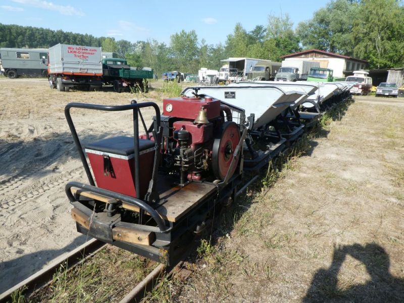 Am nächsten Tag wurde dann mit dem Fuchs 110 abgeladen und die Loren auf das Gleis gestellt. Da gibt es zunächst viel Arbeit. Mehr darüber aber dann im Restaurationsbericht.
