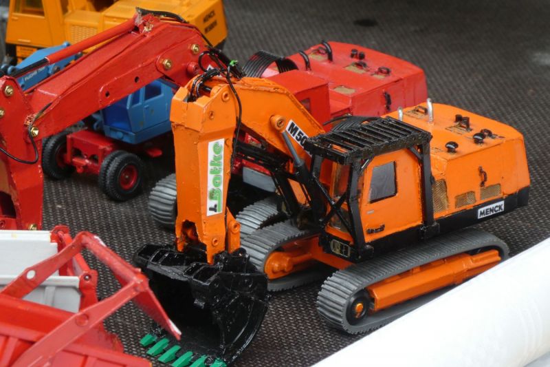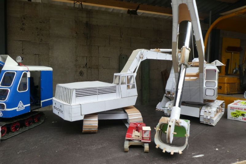 Mittlerweile umfasst die Sammlung der IghB über 150 Maschinen. Über 100 Maschinen werden im Buch vorgestellt. Dabei wird sowohl die Geschichte der Maschinen als solche mit ihrer Herkunft und dem Arbeitsleben, als auch die deren Hersteller oder die Entwicklung der Typen beschrieben. Und die Typenentwicklung war in den 50er und 60er Jahren von vielen Versuchen geprägt. Vermeintlich gute Entwicklungen wie der Bischoff Polytrack als Universalgerät erwiesen sich in der Praxis als weniger tauglich. Bestimmte Entwicklungen änderten sich in den Grundzügen seit den 50er Jahren nicht mehr. Wesentliche Meilensteine sind die Ablösung der Seilbagger durch Hydraulikbagger und, in der jüngsten Vergangenheit, die Schnellwechselsysteme an den Arbeitsgeräten. Und natürlich die Arbeitsbedingungen der Maschinisten. Früher war der Platz des Maschinisten vor dem Motor, neben den Winden, den unmittelbaren Lärm und Geruchsemmisionen der Maschinen ausgesetzt. Von den sich drehenden Winden und Zahnrädern ging eine ständige Gefahr aus, undichte Auspuffleitungen liesen Abgase in die Kabine. Da war es ganz gut, daß Durchzug herschte. Unvorstellbar wenn man die heutigen schallgekapselten Kabinen betrachtet, welche eher einem Büro-Arbeitsplatz gleichen. Dennoch wurde mit solchen Maschinen und unter solchen Arbeitsbedinungen ein wesentlicher Teil des Wiederaufbaus nach dem Krieg geleistet.